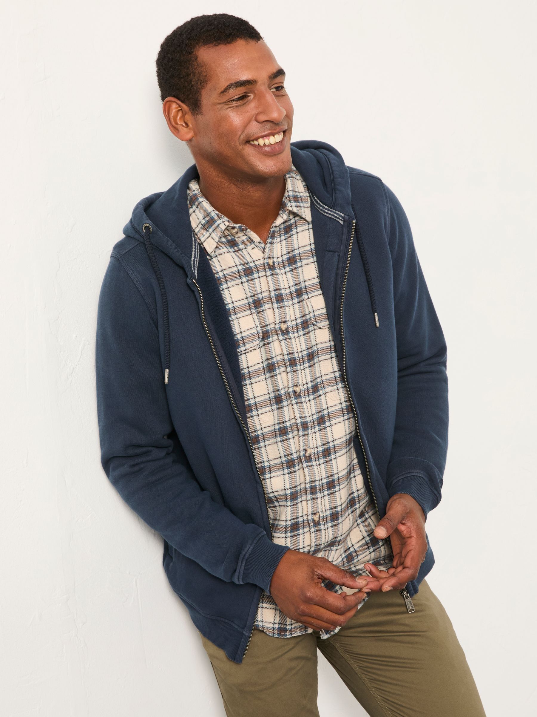 This hoodie is the perfect layer for breezy days or cooler evenings. Its soft breathable cotton makes it great for layering over a T-Shirt. It’s got all the usual great features you love such as a drawstring hood, and front pockets (including a small zip-up chest pocket). It comes in the same relaxed, comfortable fit, too. You’ll be living in this one.Adjustable hoodZip-up frontFront pocketsSoft touch cotton