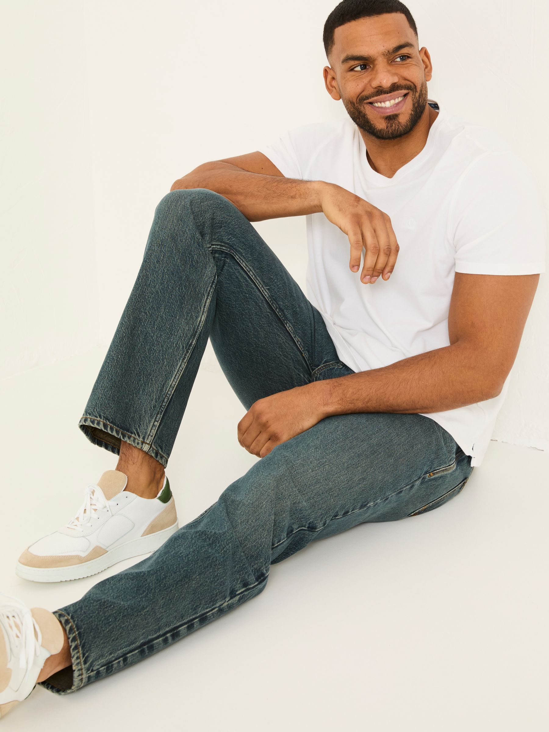The classic straight cut. The fit is easier on the thigh with a straight fit down to the ankle, making these a comfortable yet stylish option.We’ve washed them before they get to you for an authentic look. Whether you’re chilling on the weekend or heading into the office on Monday, you can be confident these denma vintage jeans are up to the challenge.Easy on the thighStraight fit to ankleZip & button flyMeasurements and model information:Model is 6ft 1”/185cm and wears UK size 32 LongModel is 6ft 3”/191cm and wears UK size 38 Regular