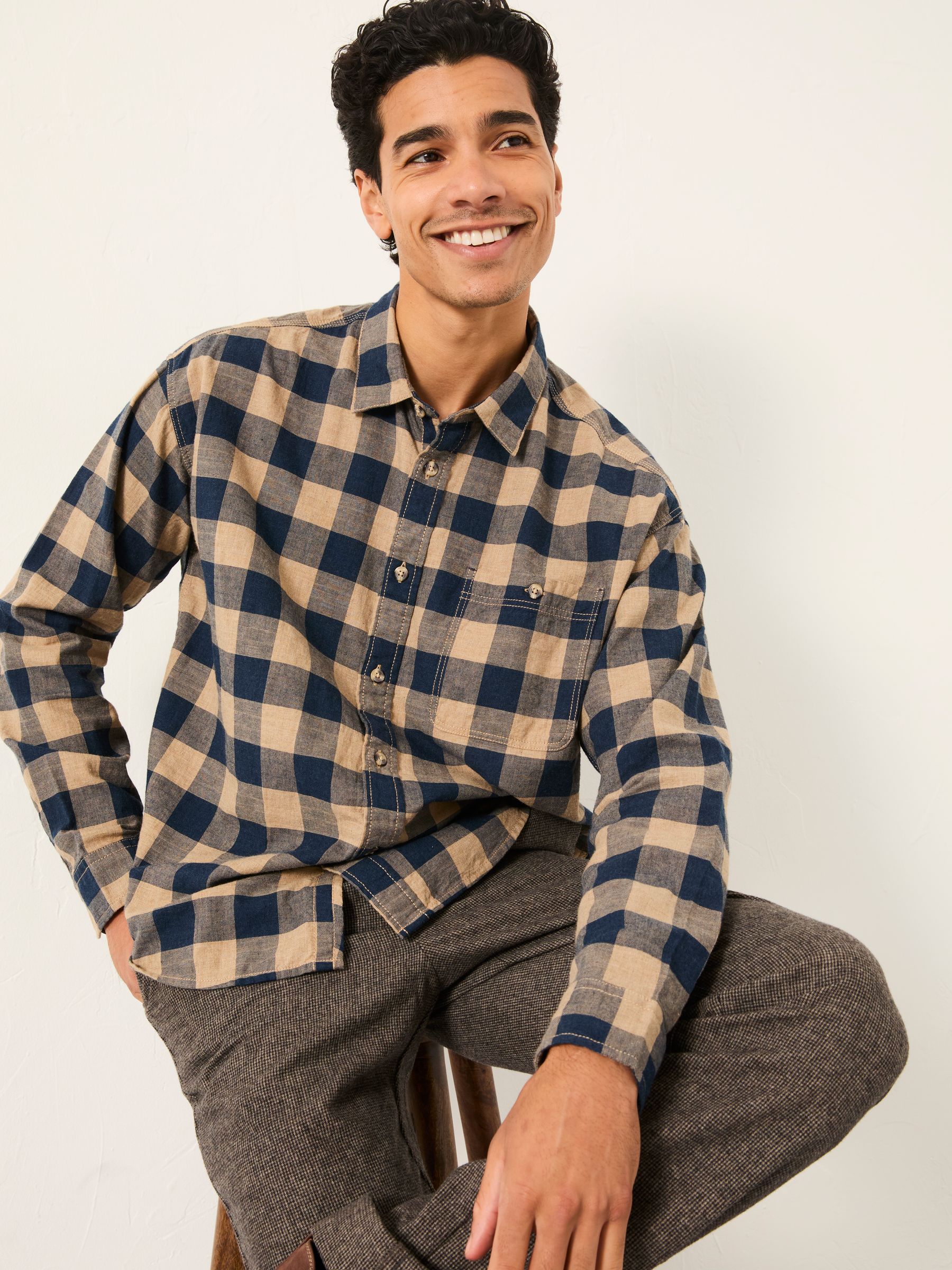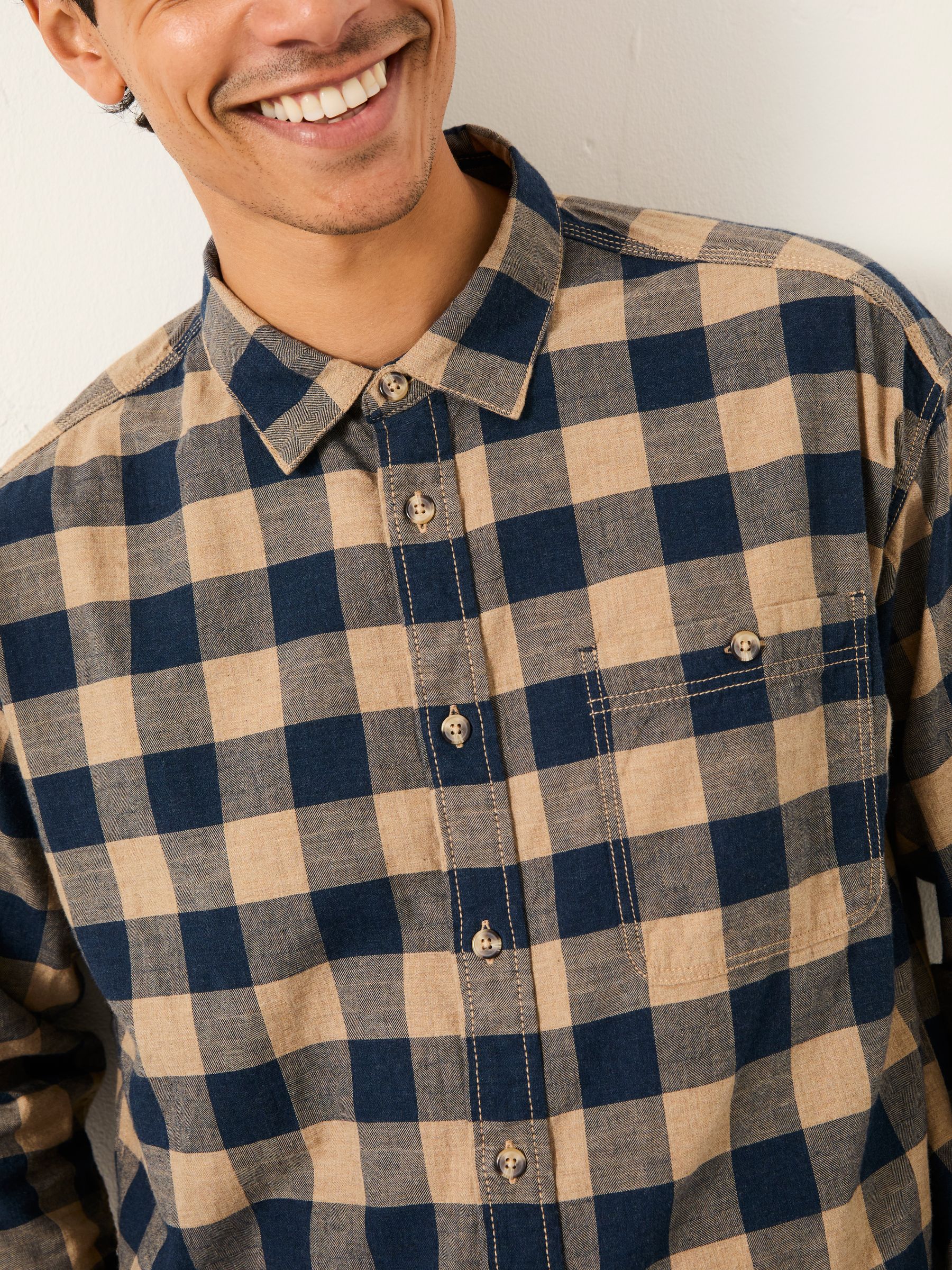 Our buffalo check long sleeve shirt is the perfect smart casual shirt. Pair with some chino trousers and loafers for dinner with friends or layer with a t-shirt and jeans for a casual weekend look. Featuring our bestselling buffalo check print, we’ve paired it with a smart collar, cuffed sleeves and a new relaxed fit. Crafted from a soft 100% cotton, this shirt is lightweight and breathable and also available in tall sizes.Model is 6’1”/185cm and wears UK size M