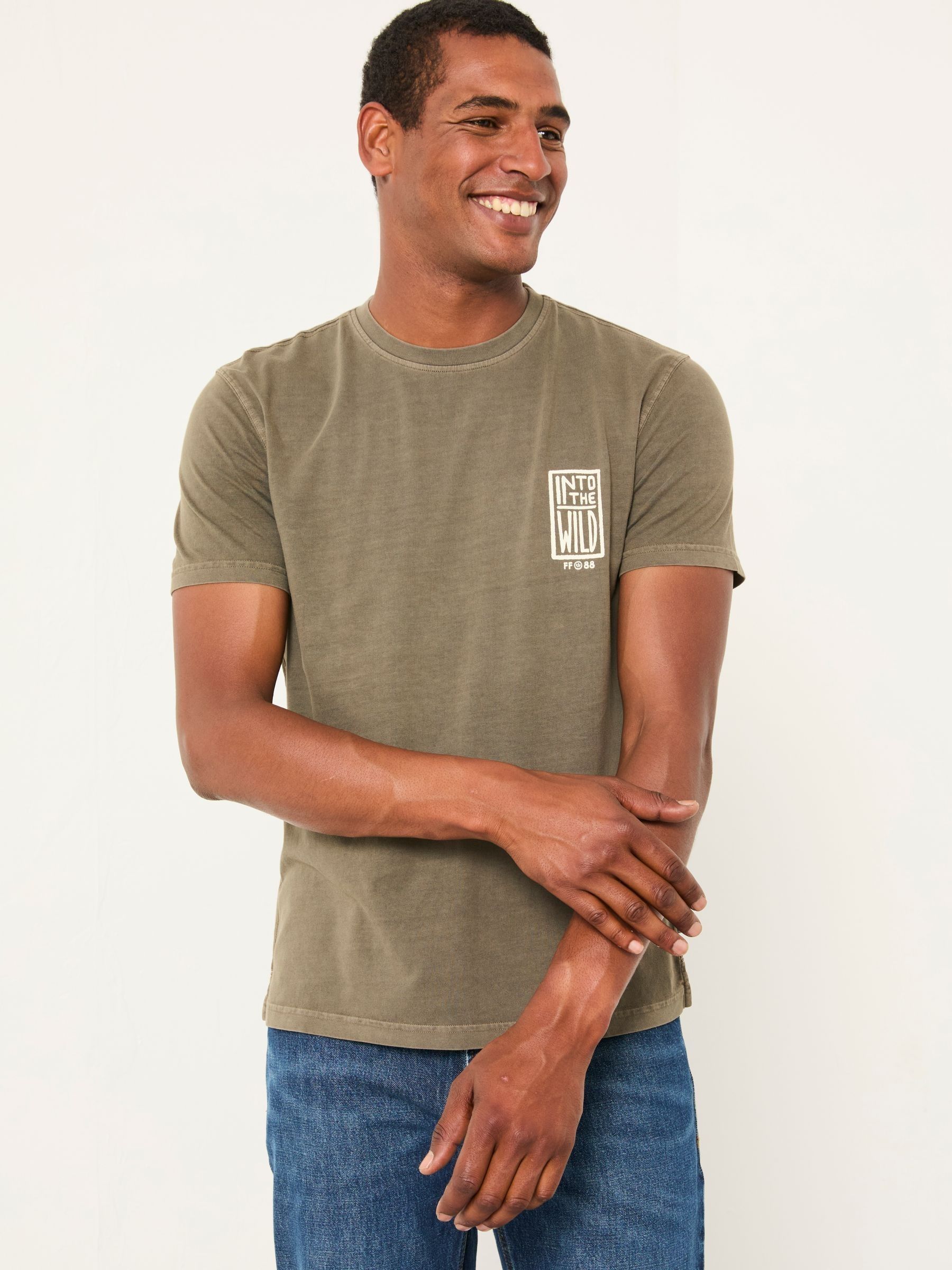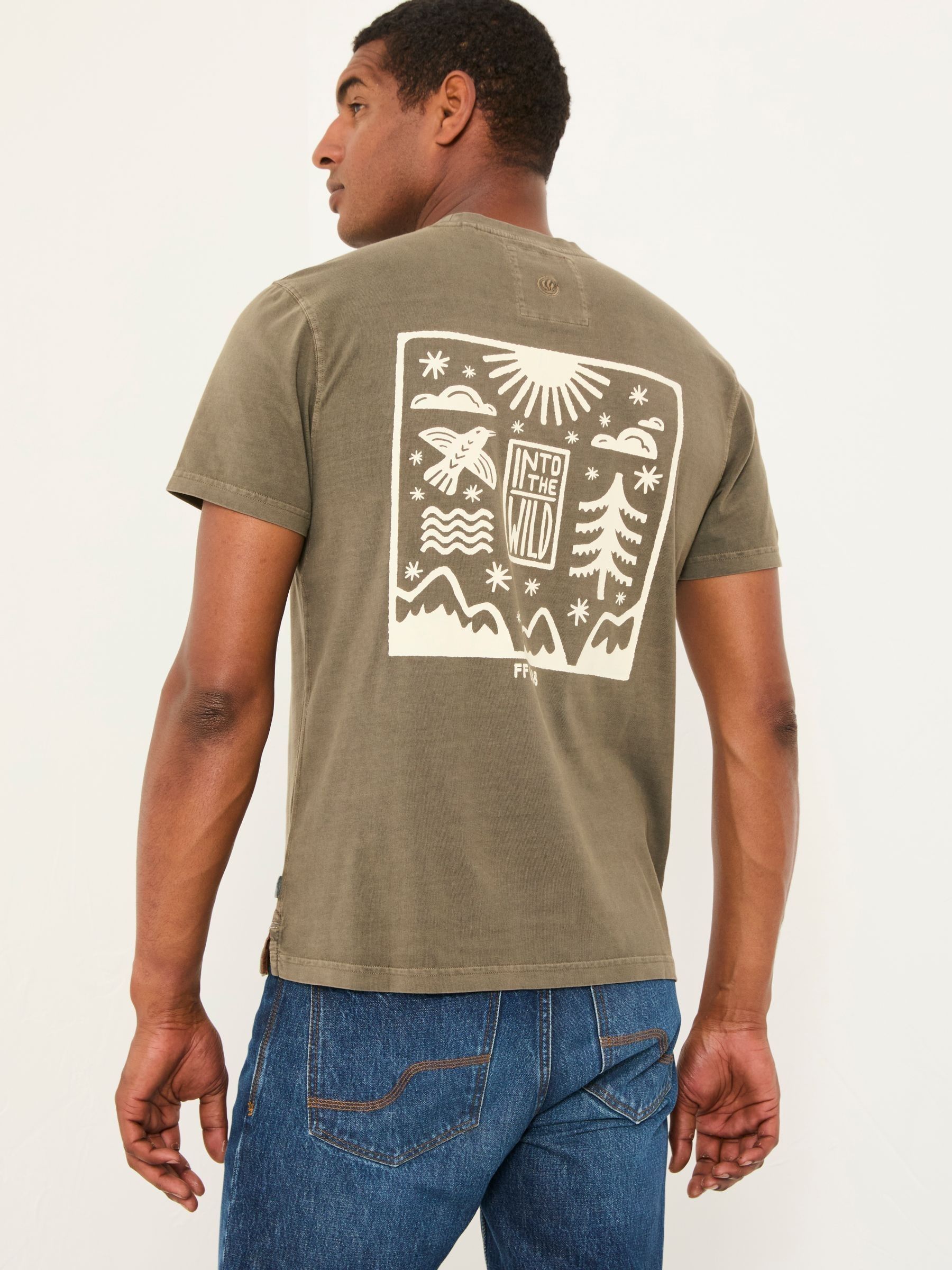Stay stylish and comfortable in our graphic t-shirts. This Into the Wild graphic t-shirt features an eye-catching design and is made from 100% cotton making it soft and breathable for all day wear. Pair with your favourite pair of jeans or shorts for an elevated casual look.Model is 6’3”/191cm and wears UK size Medium