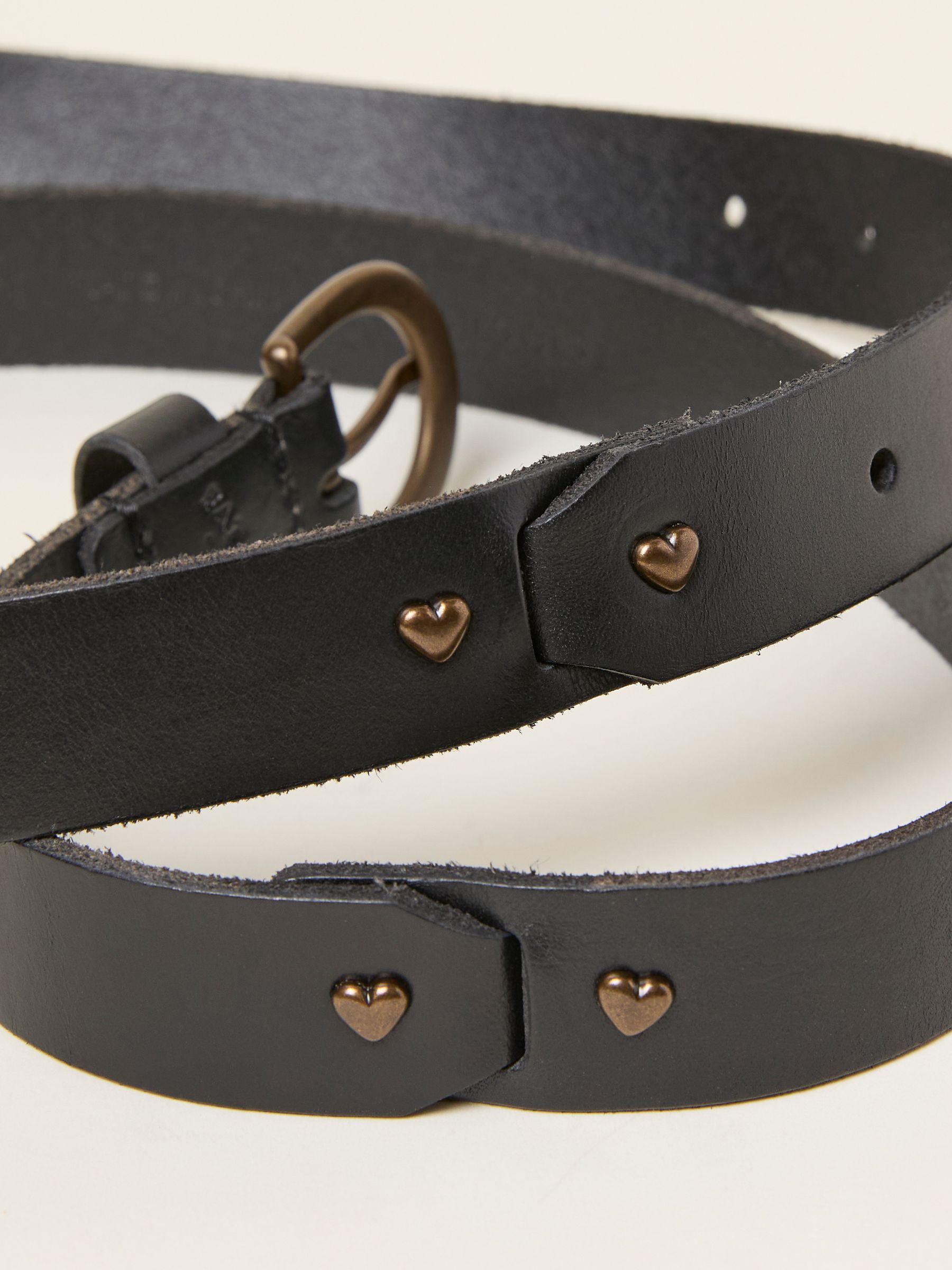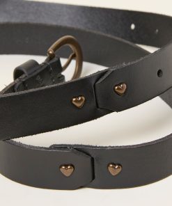 Our Heart stud leather belt is not only good for practicality but also for embellishing an outfit. With a pair of denim jeans or around a flowy dress to add shape, the options are endless. Made from soft 100% leather and topped off with a metal buckle, this belt provides versatility and comfort.