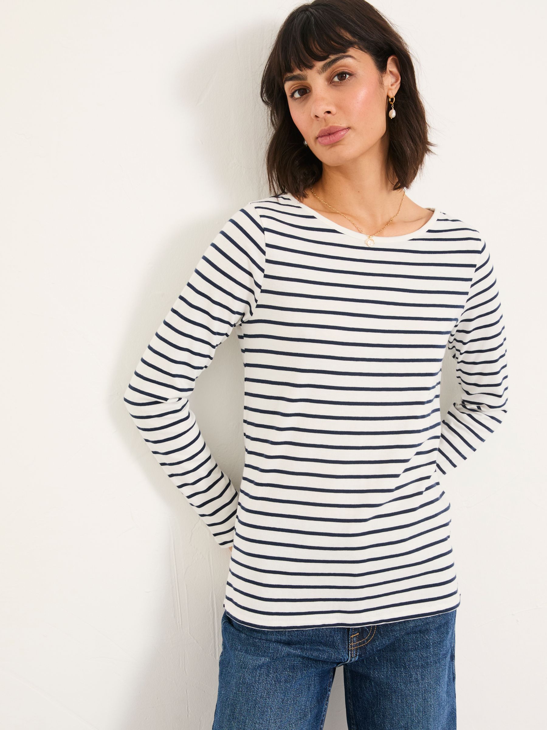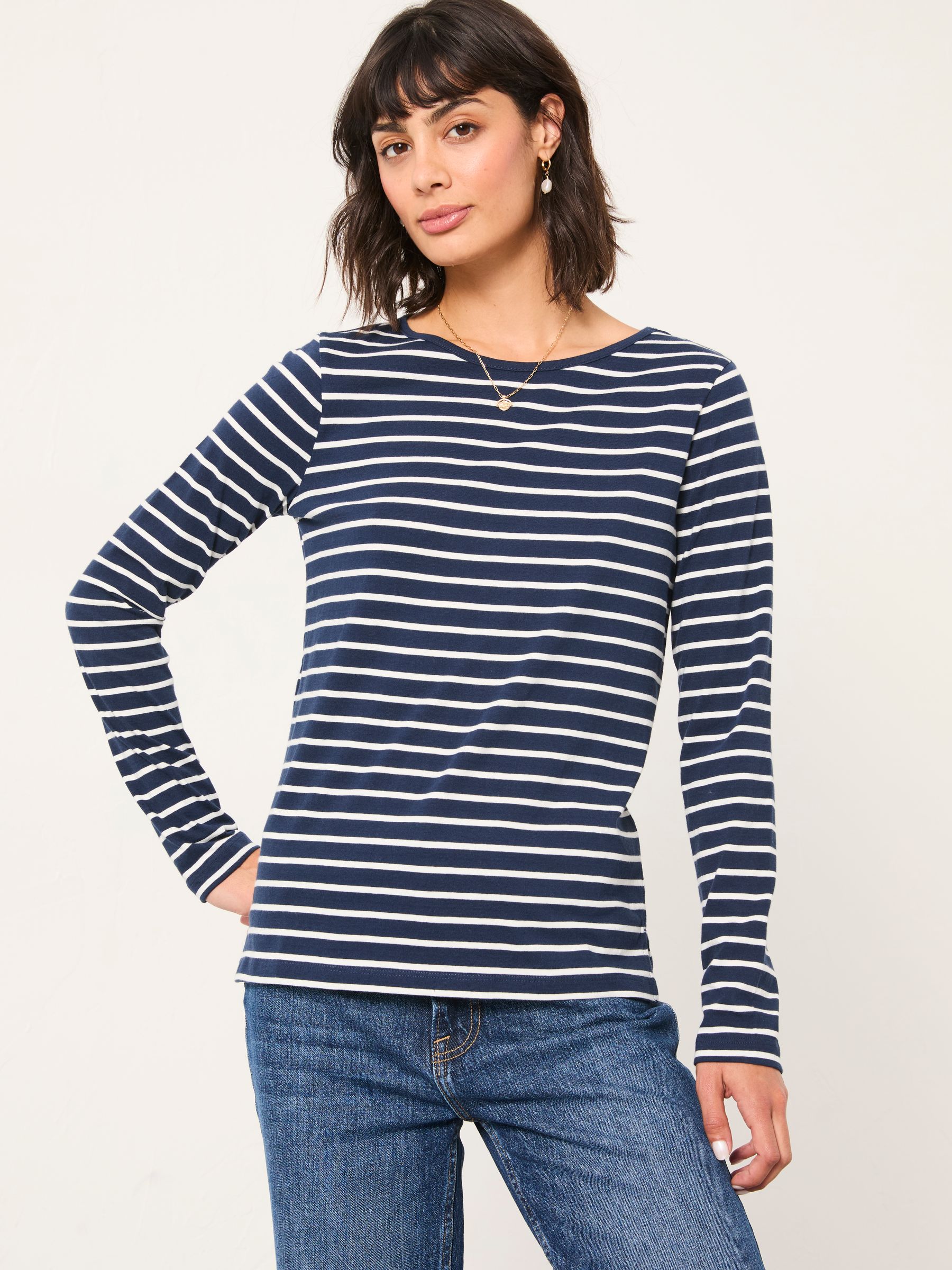 It’s our favourite Breton, the perfect top for all seasons. Made from 100% cotton, it is soft and breathable for ultimate comfort. Dress with jeans and a jacket for those chillier days or pair with some sandals and a skirt for warmer temperatures. Versatile and easy to wear, our Bretons are a FatFace staple for a reason.Model is 5’9”/175cm and wears UK size 8