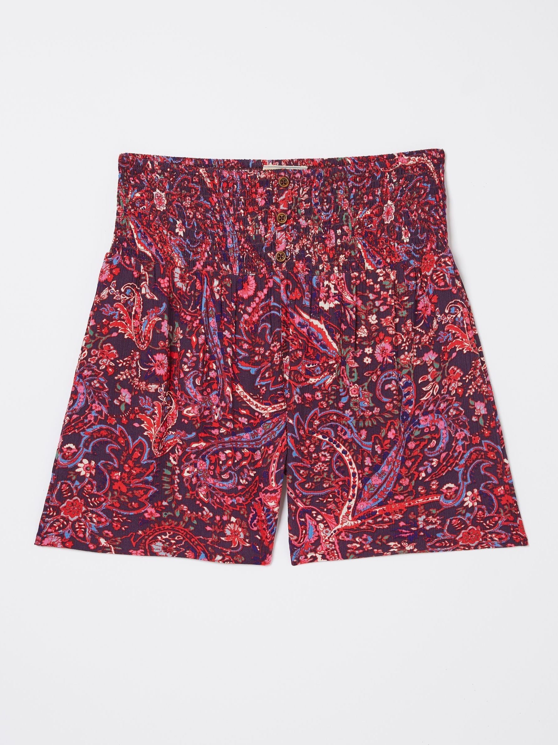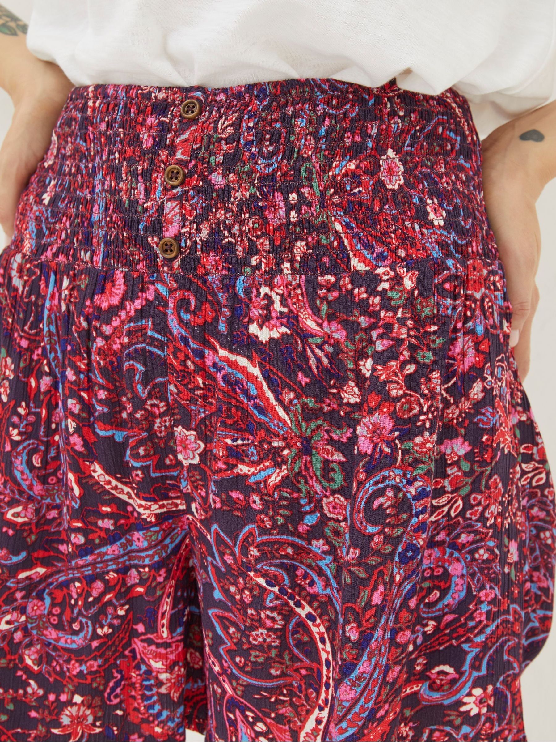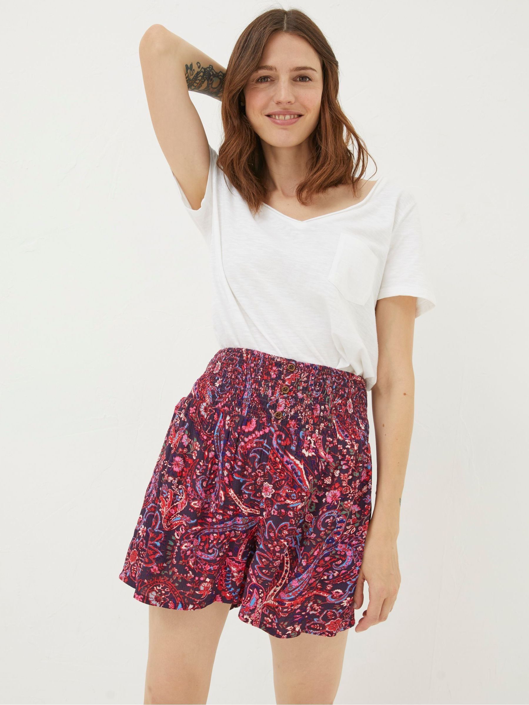 Head for the bright side in these shirred waist shorts. Made from supersoft 100% LENZING™ ECOVERO™ viscose, they’re breathable and perfect for wearing all season long.The bold print adds visual interest to these versatile shorts, while the shirred waistband makes them very comfortable and flattering. Wear them with a plain T-Shirt and trainers for a sunshine-ready look.