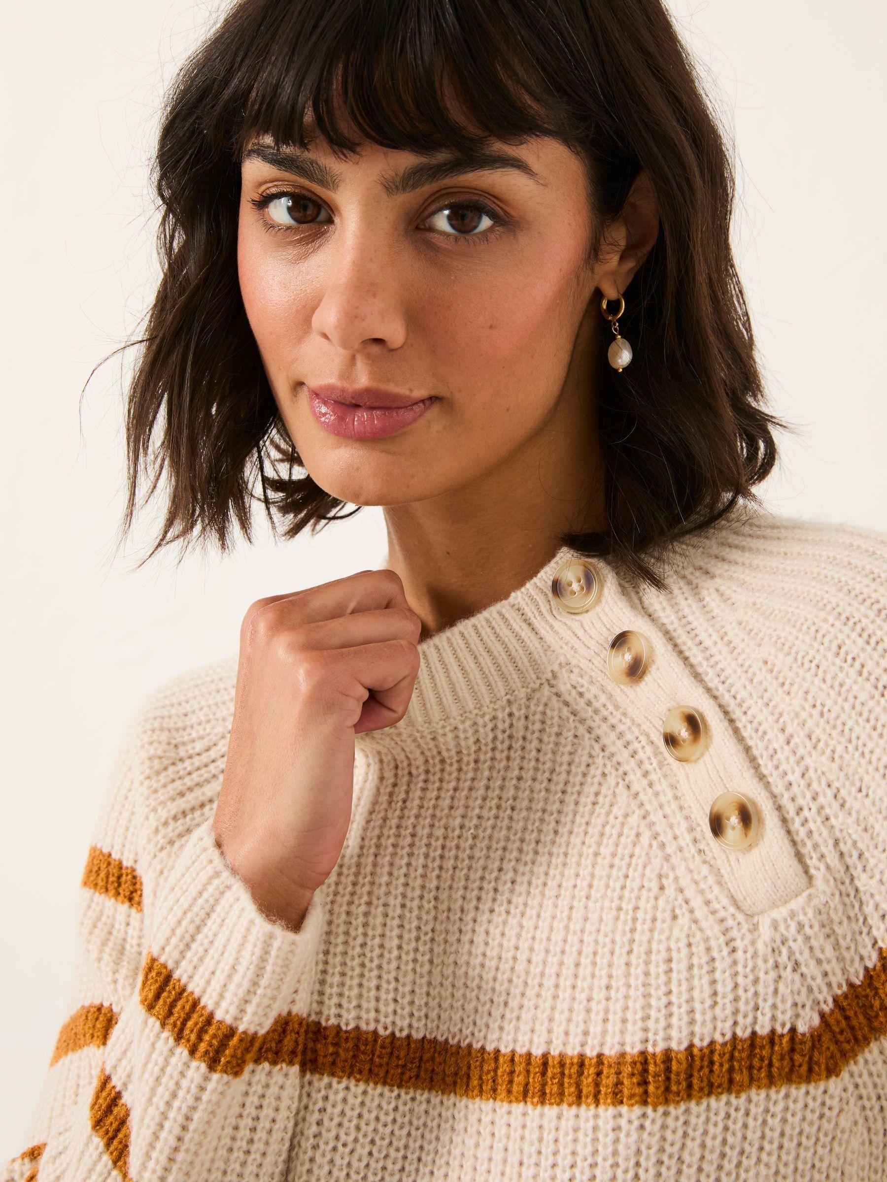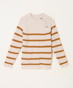 Fat Face Women’s Chalk White Breton Stripe Knitted Jumper | Chalk White