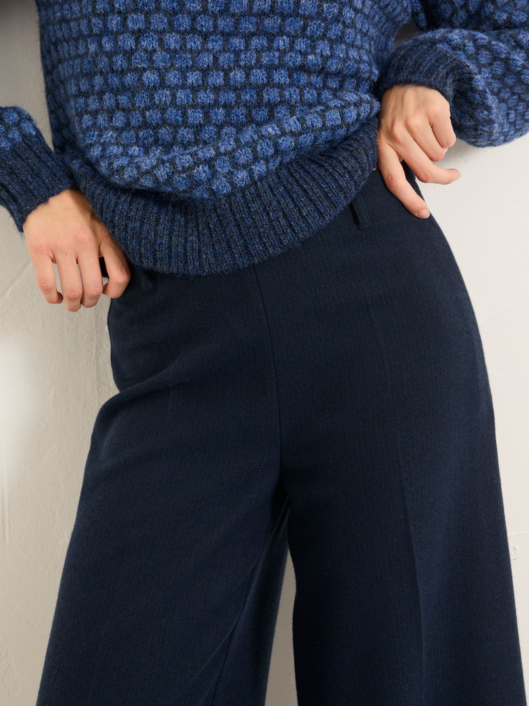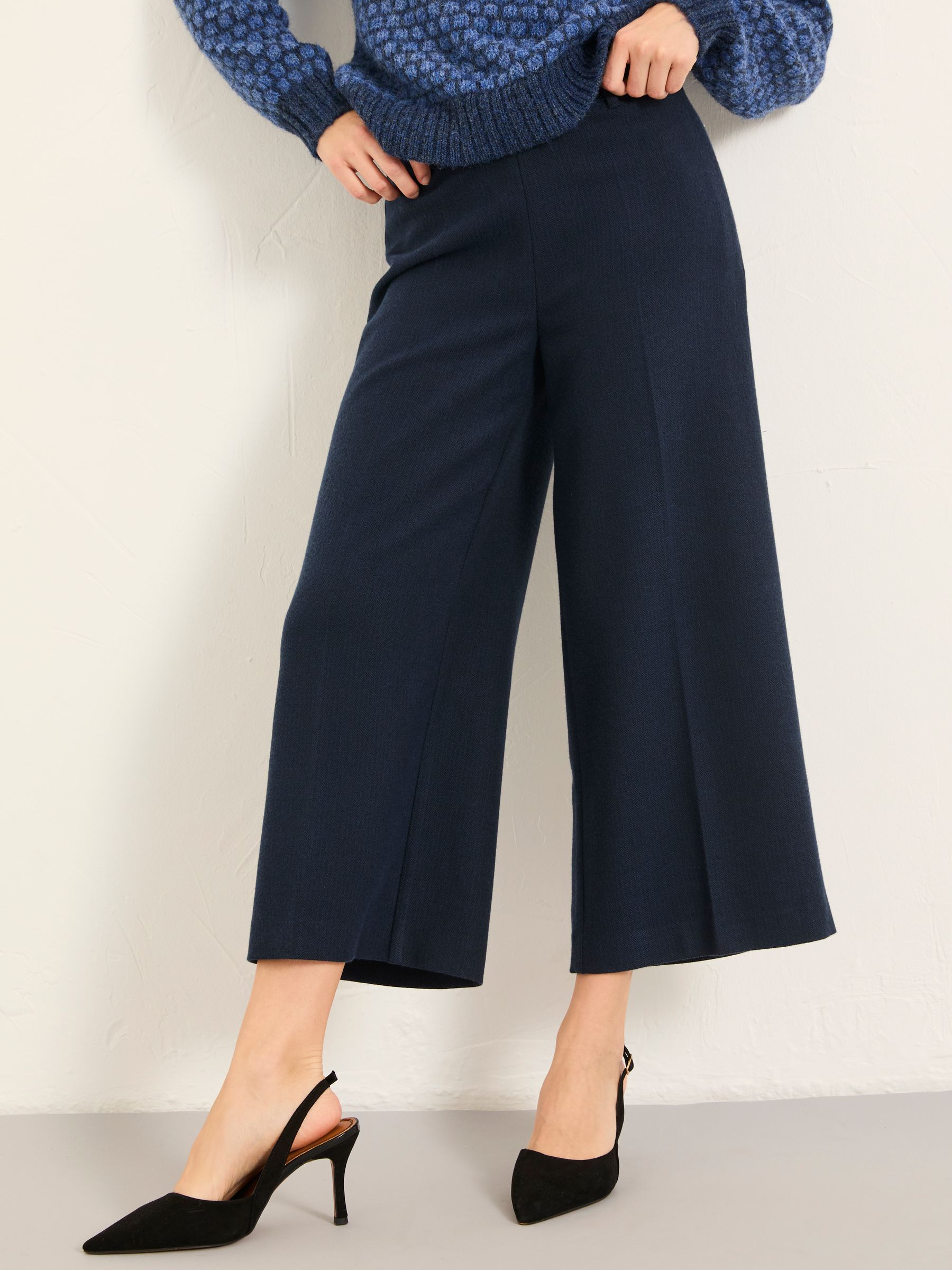 Looking for that perfect pair of trousers that are versatile and easy to style? Look no further. Our Dolly cropped wide leg trousers are the perfect mix of smart and casual. Their sleek silhouette makes them an effortless choice to look put together for dinner and drinks or office days, just pair with a blouse and some loafers. But their soft fabric makes them easy to dress down if paired with trainers and your favourite comfy sweatshirt. With a wide leg shape, these trousers offer a flattering fit while remaining lightweight and comfortable enough to wear all day.Short inside leg length 21" / 53cm.Regular inside leg length 23" / 58cm.Long inside leg length 25" / 63cm.