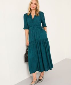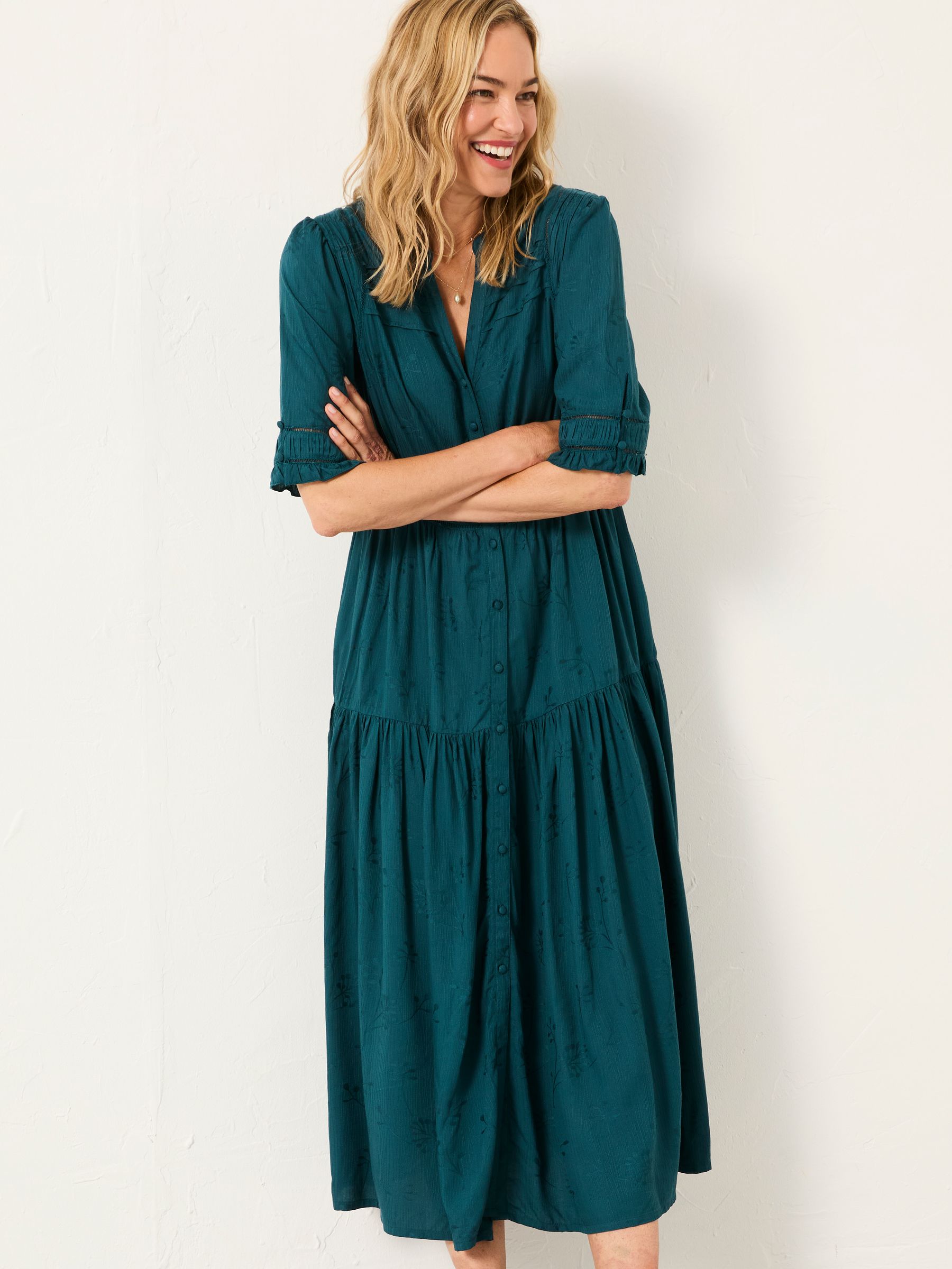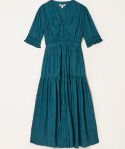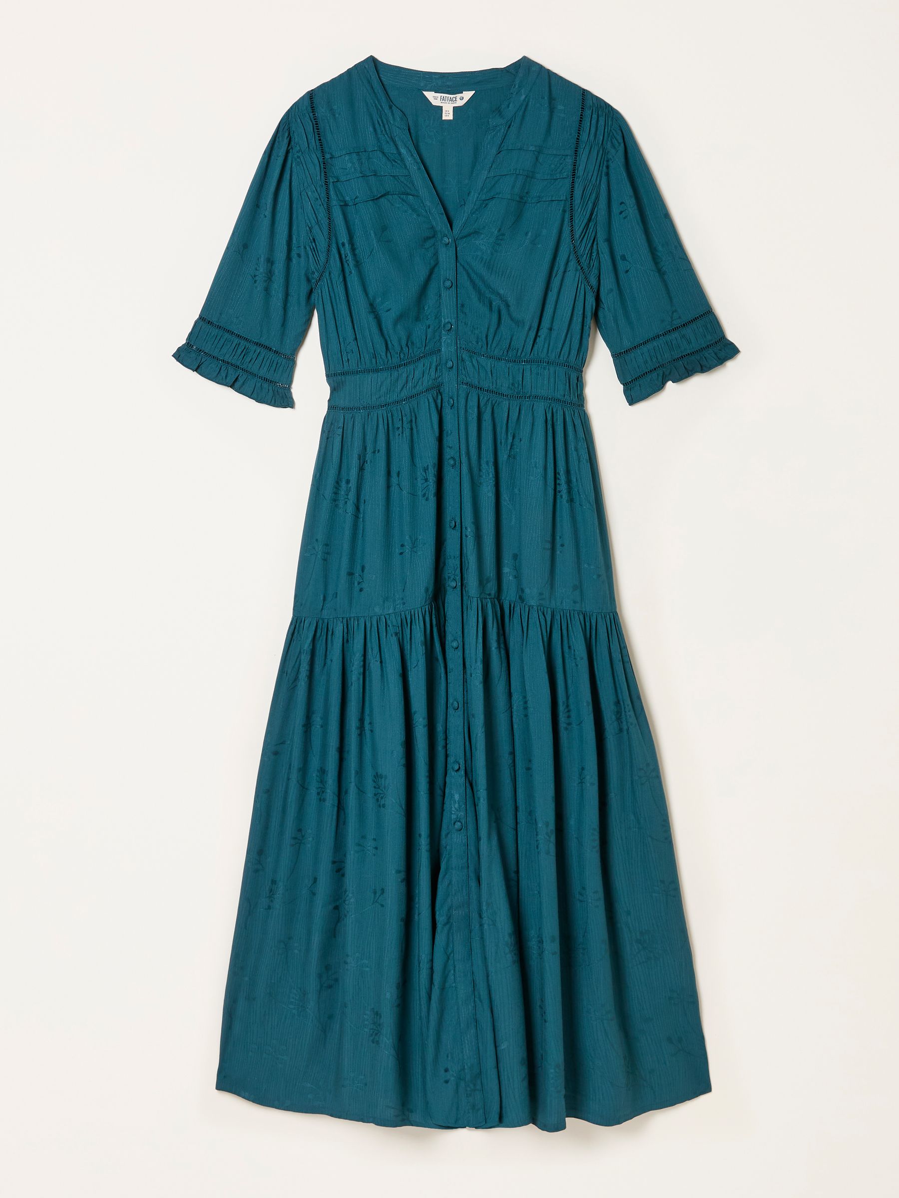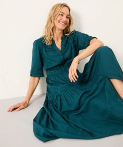Fat Face Women’s Elsie Dark Teal Regular Embroidered Midi Dress | Dark Teal