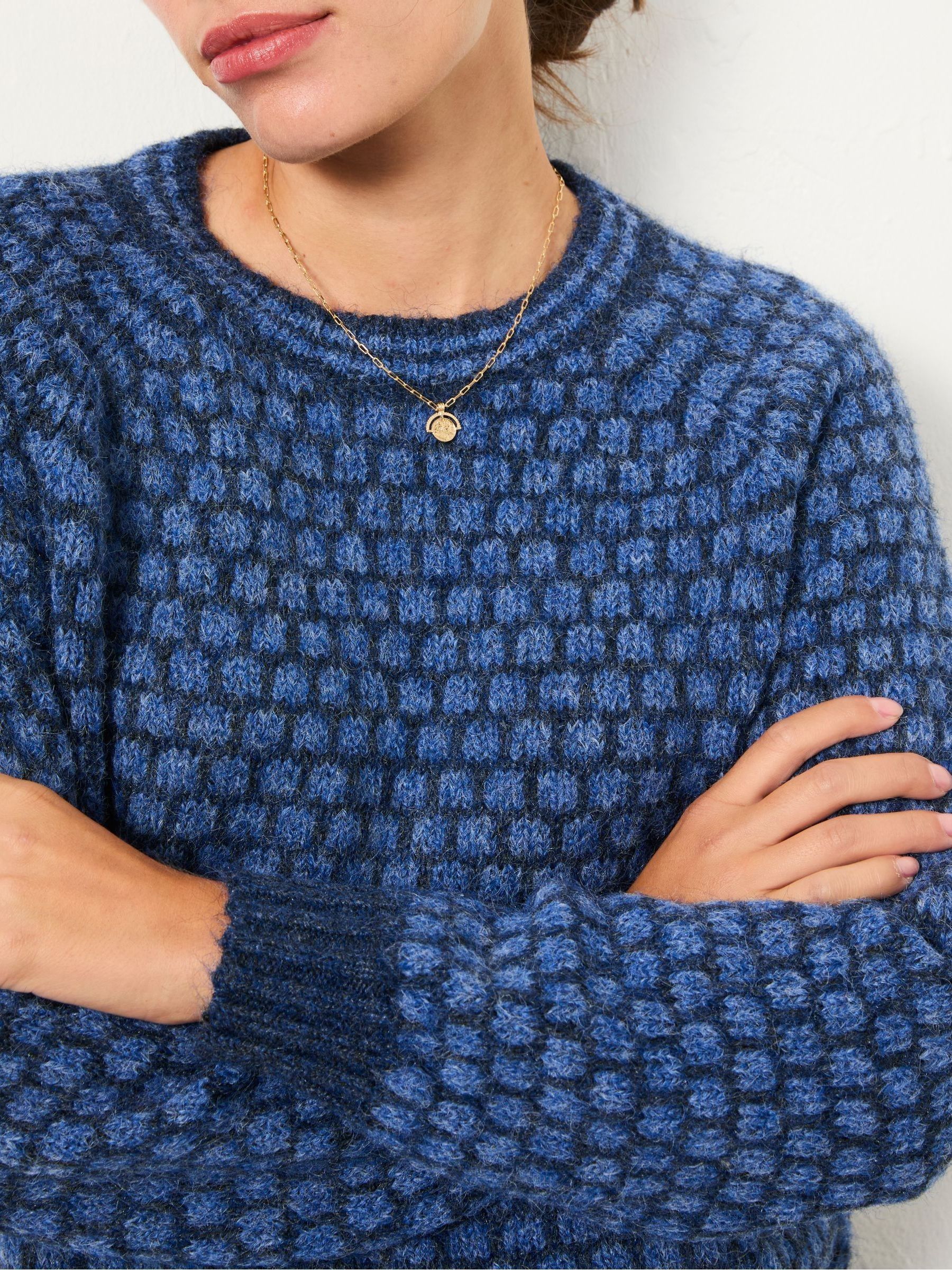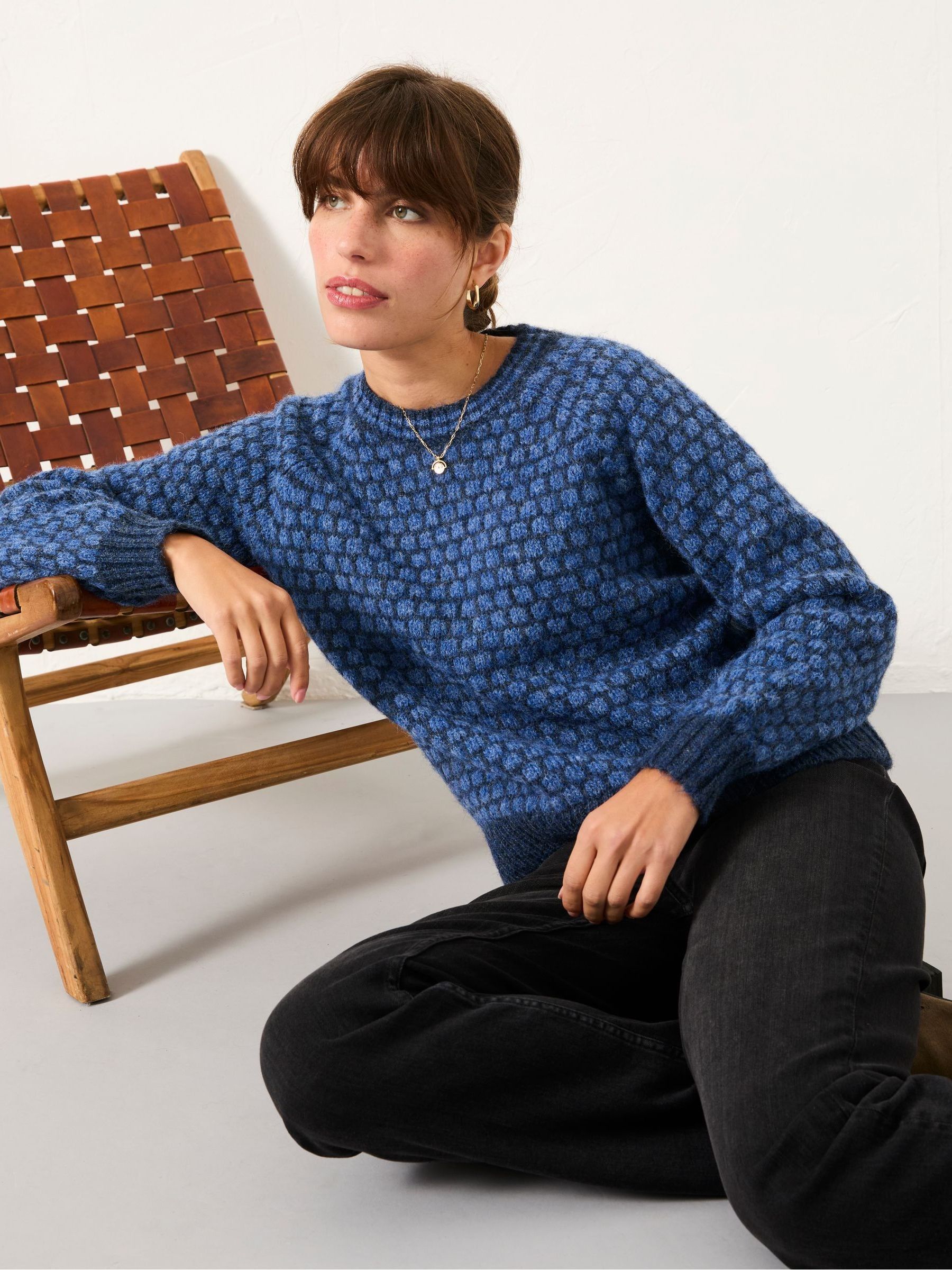 Add a playful twist to your knitwear with our Elsie patterned knitted jumper, featuring a subtle spotted knit design for added texture and charm. Crafted from a soft, cosy fabric , it offers warmth without bulk and a relaxed fit that’s perfect for layering. Whether dressed up or down, this jumper brings a touch of character to everyday looks while keeping comfort front and centre.