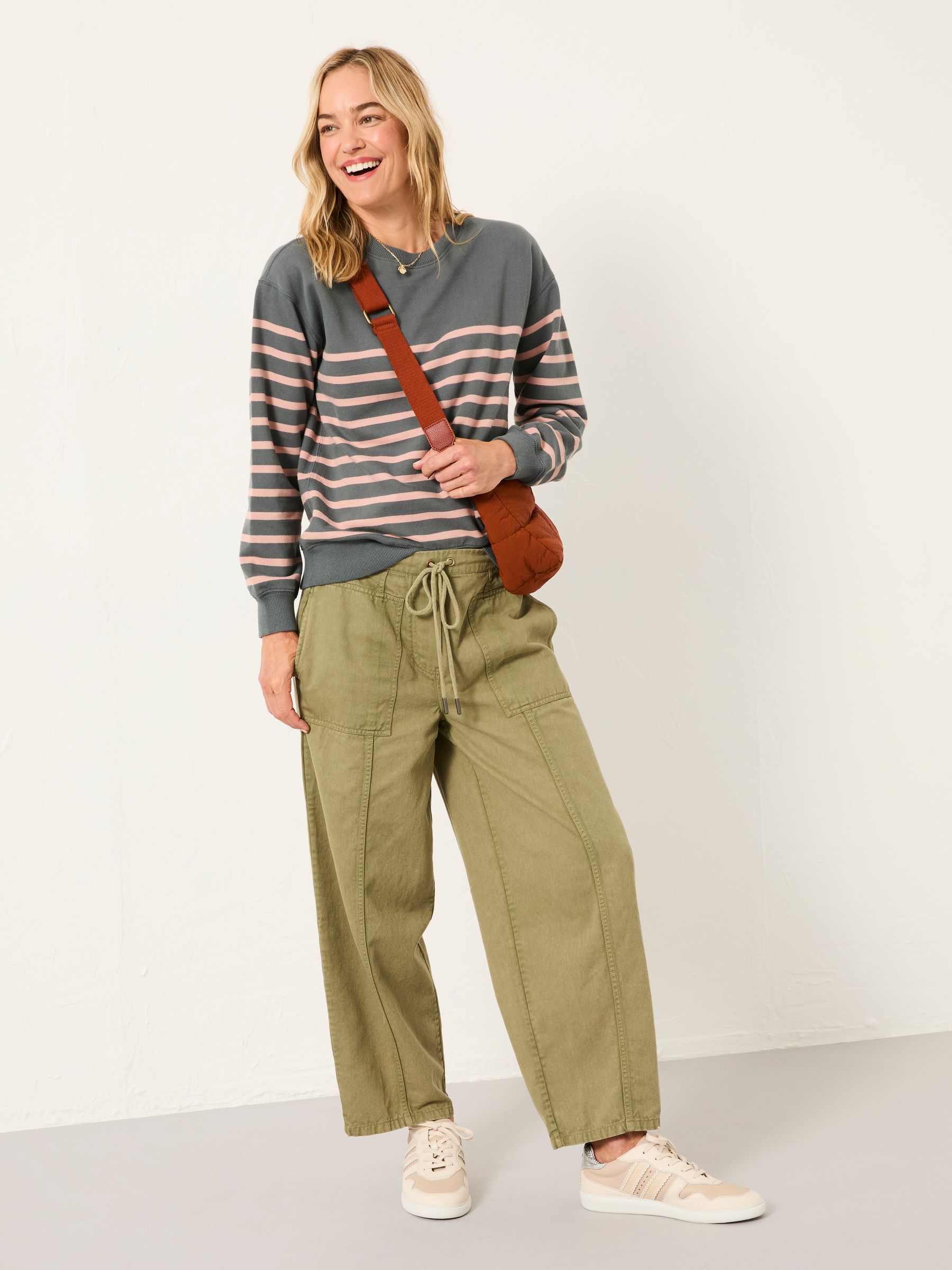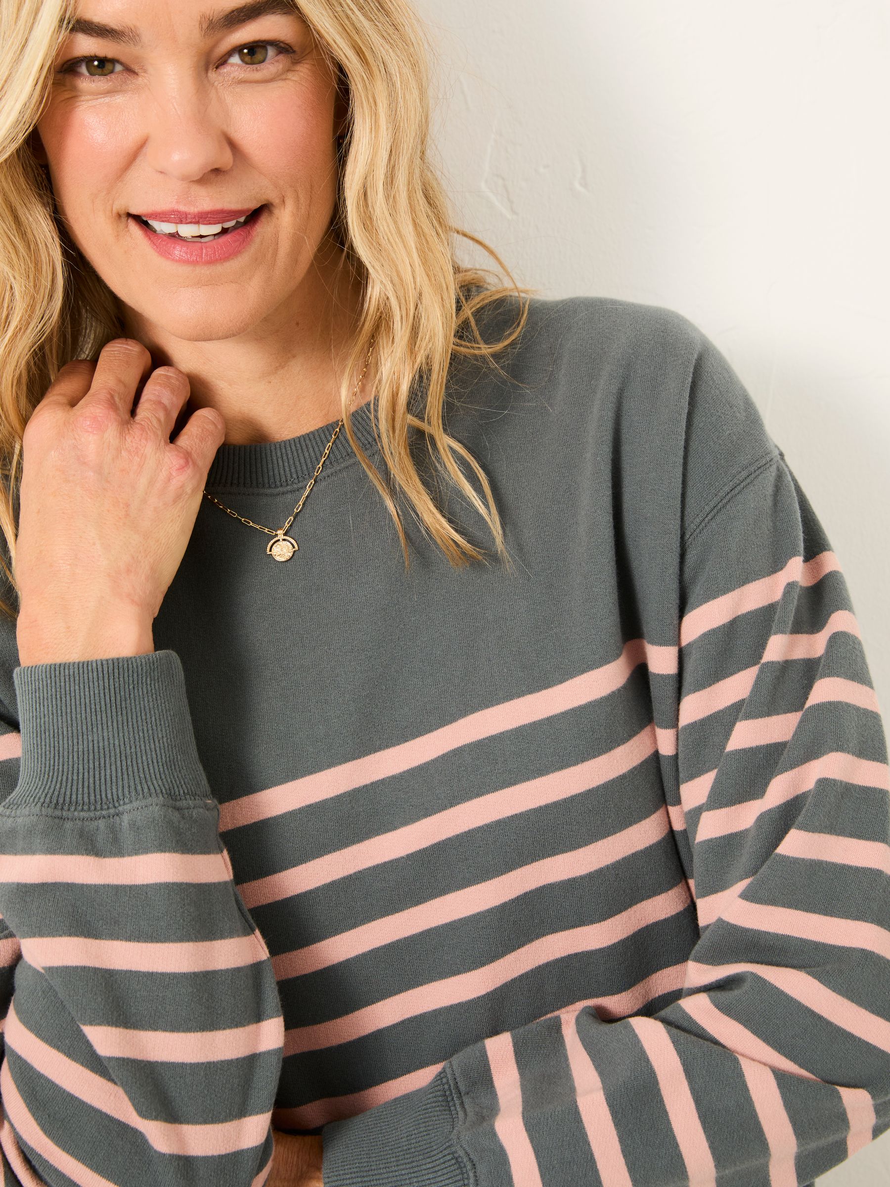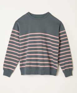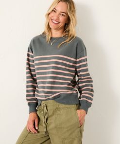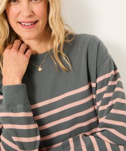 Fat Face Women’s Georgia Grey/pink Stripe Crew Sweatshirt | Grey & Pink Stripe
