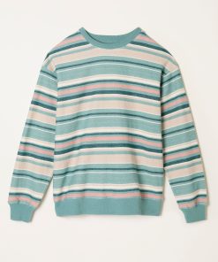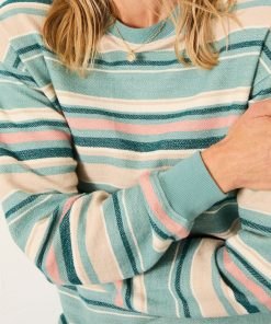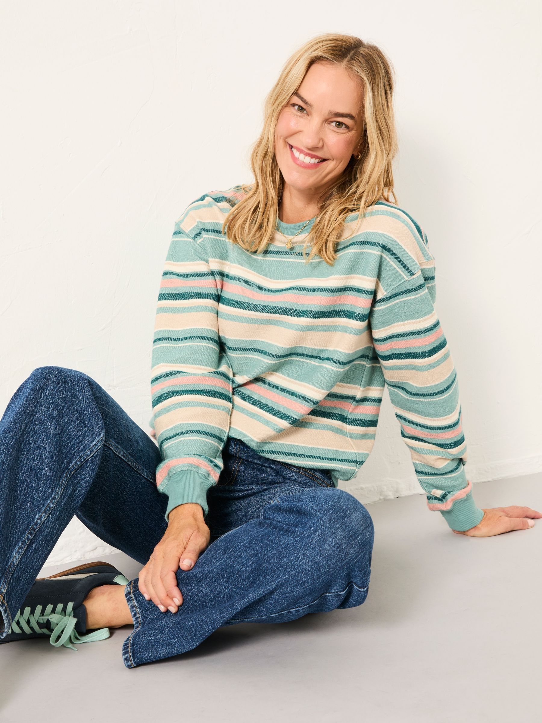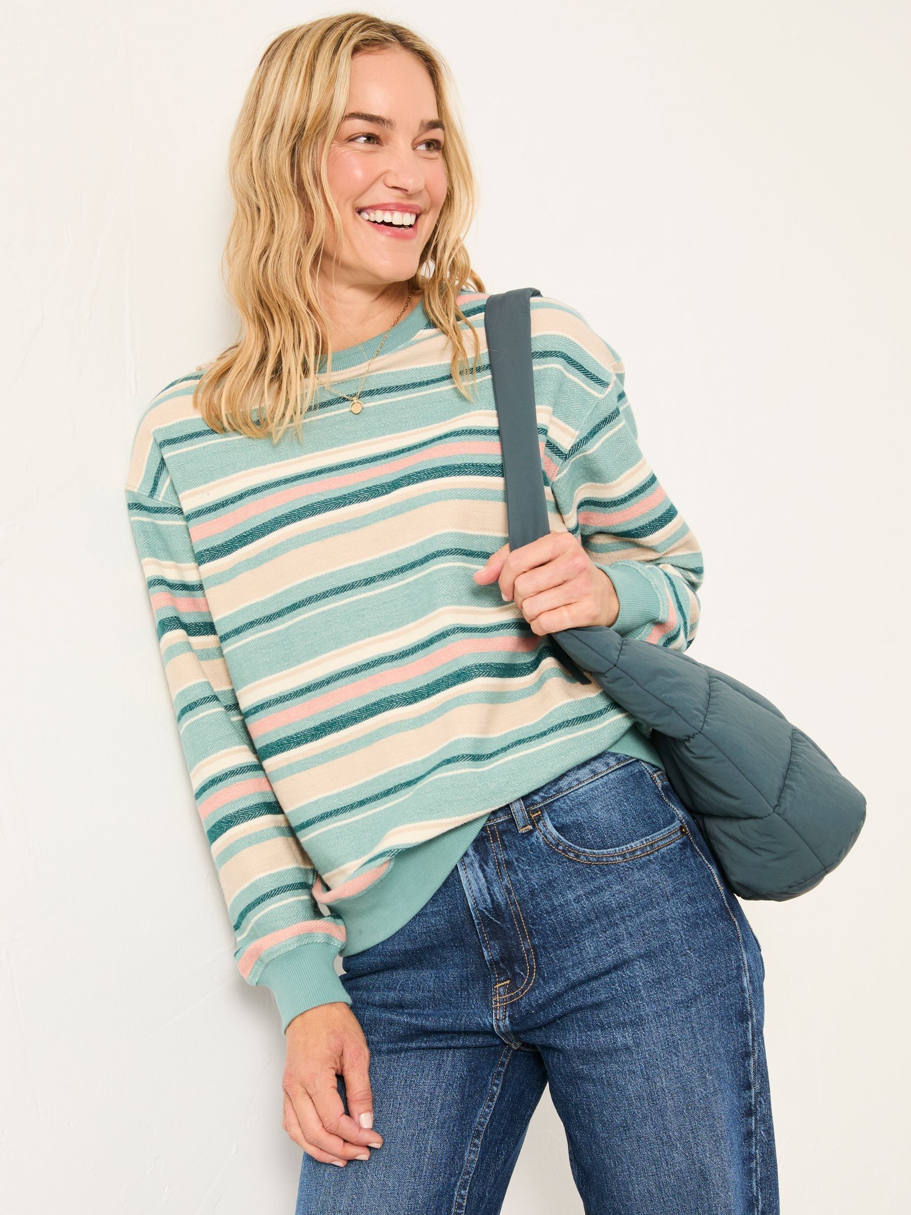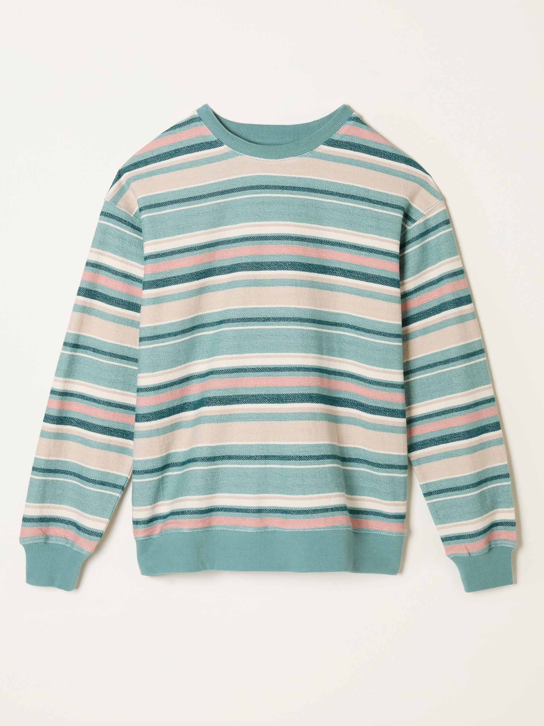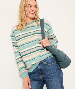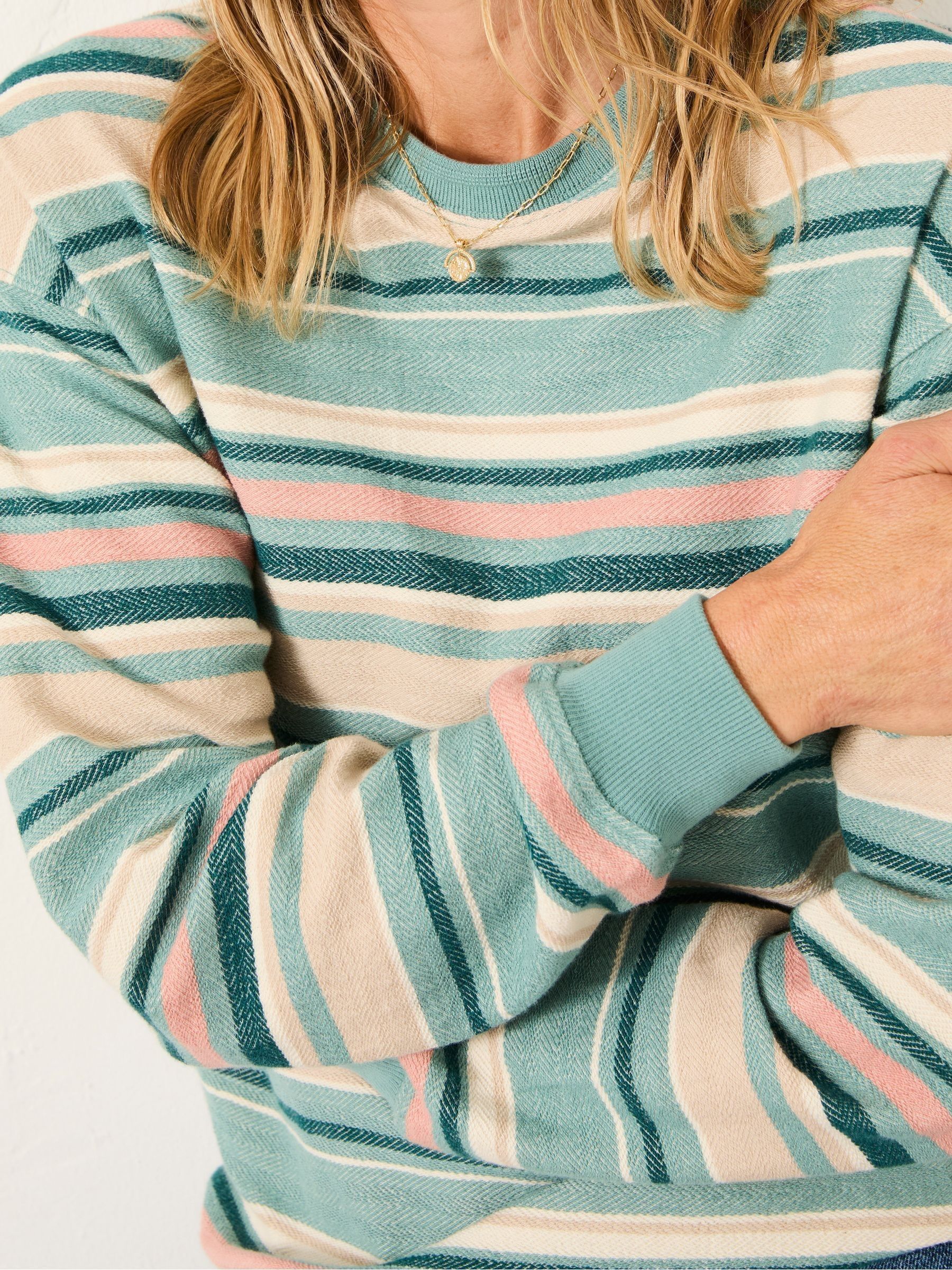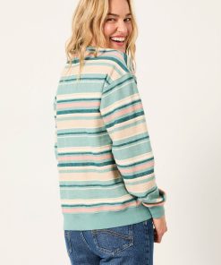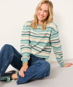 Fat Face Women’s Georgia Teal Blue Textured Stripe Crew Sweat