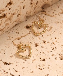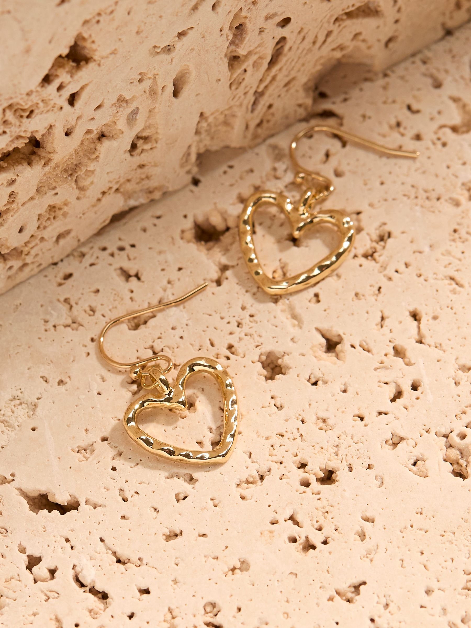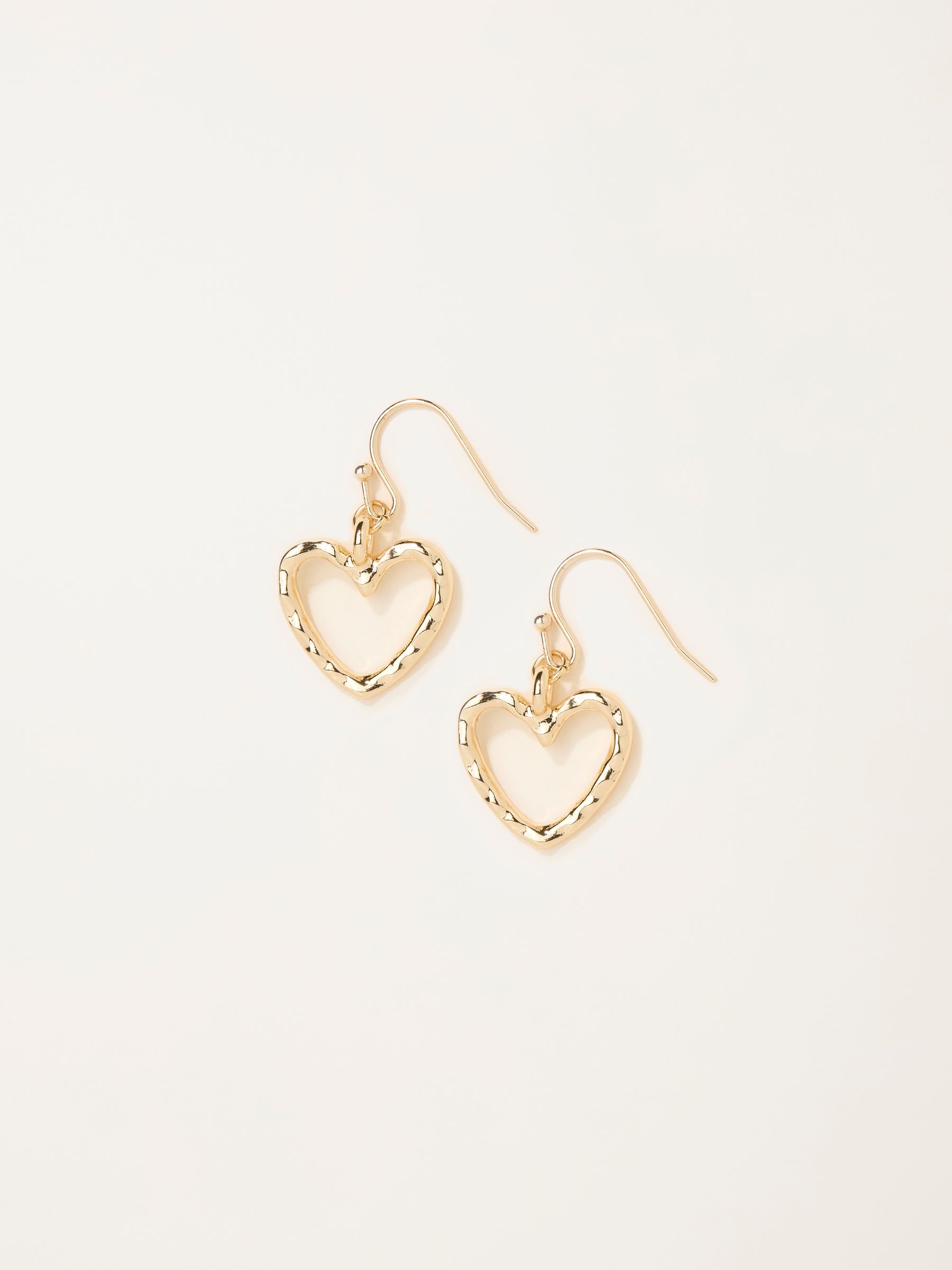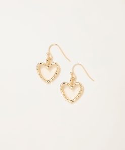 Fat Face Women’s Gold Tone Hammered Heart Drop Earrings