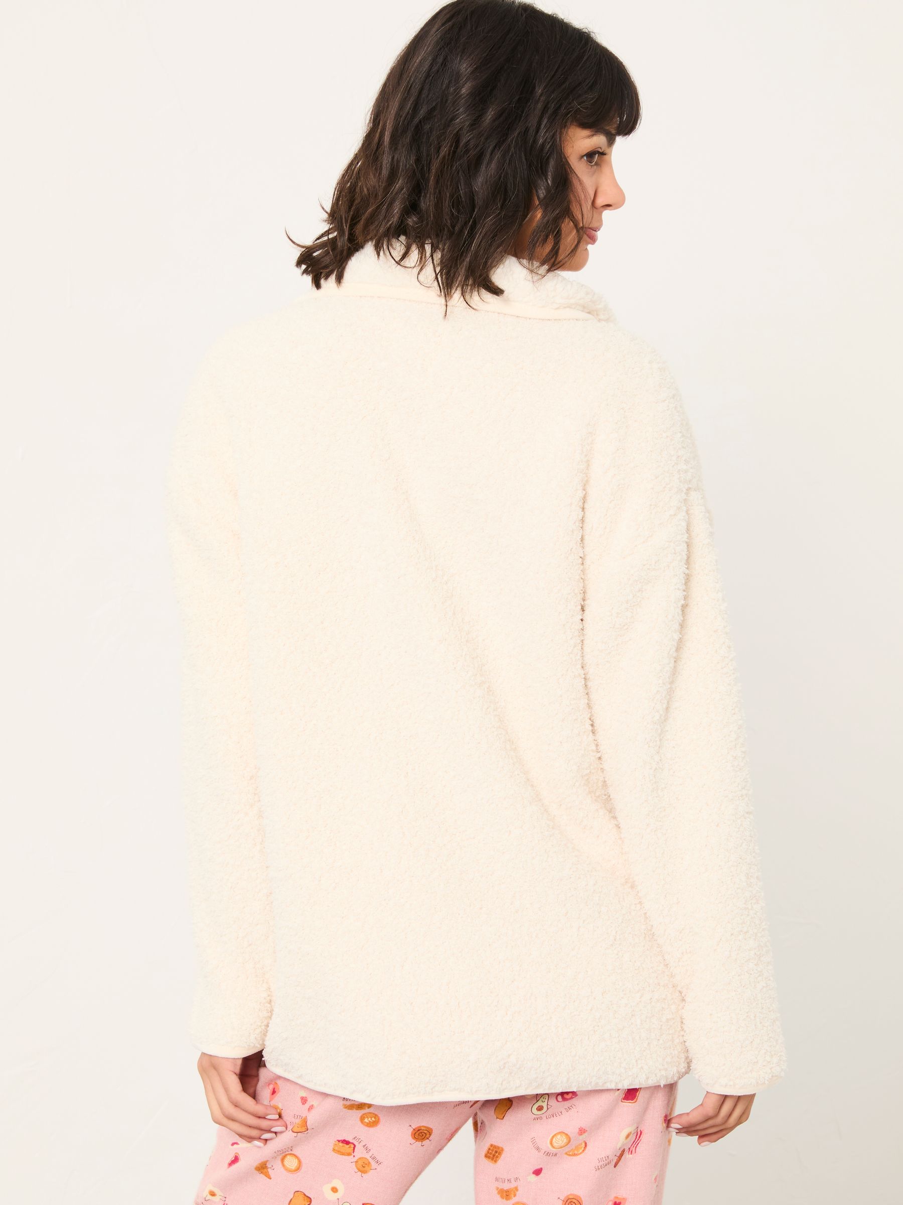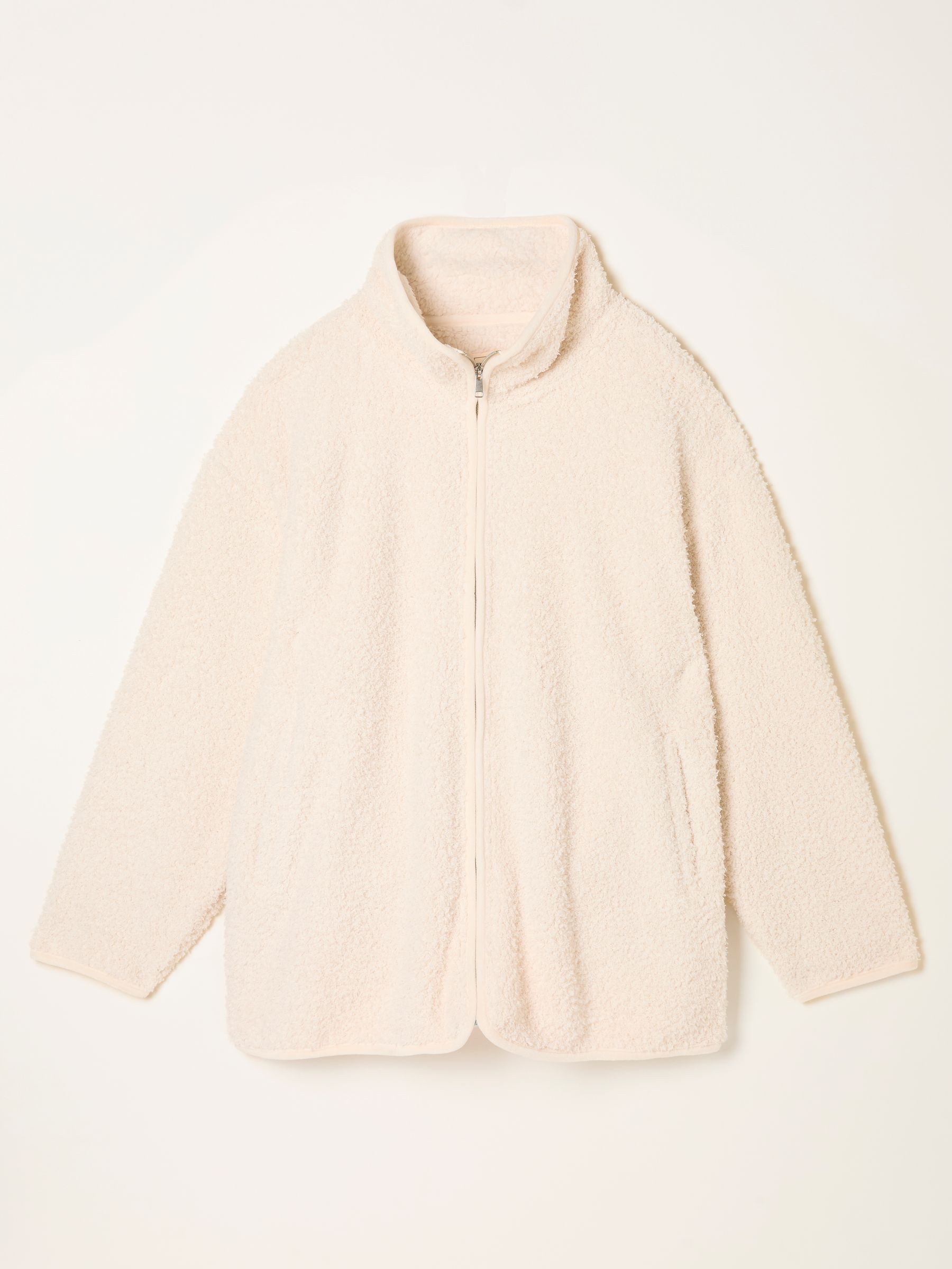 Crafted from ultra-soft, fluffy recycled polyester, our Borg Snuggle Zip Through Top will have you wishing for bedtime. The cosy collar and relaxed fit are perfect for keeping you snug during the colder months, while the longline fit offers all the coverage you need when all you want to do is snuggle up.