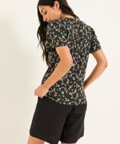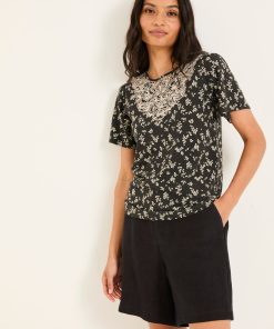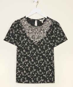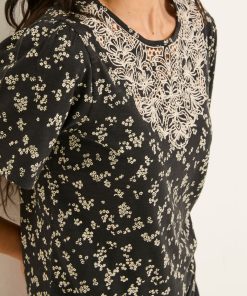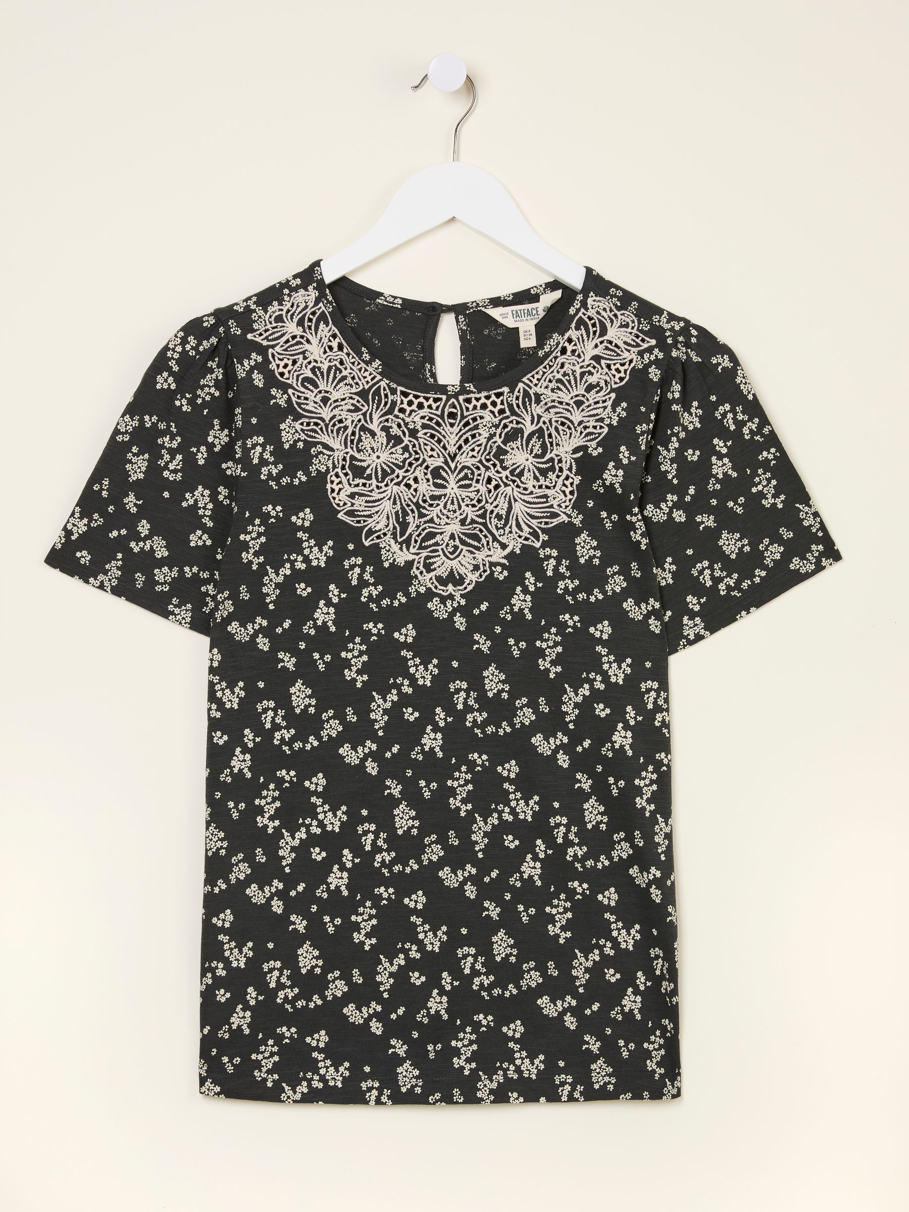 A fresh take on classic. Our Leoni mono ditsy t-shirt features a delicate patterned embroidery stitched across the front beautifully complemented by a subtle floral print. The perfect amount of texture and print that adds character to this everyday staple. Soft, breathable, and easy to wear its perfect for coffee runs, casual days out – effortlessly pairing with your favourite denim or go-to skirt.Model is 5’9”/175cm and wears UK size 8