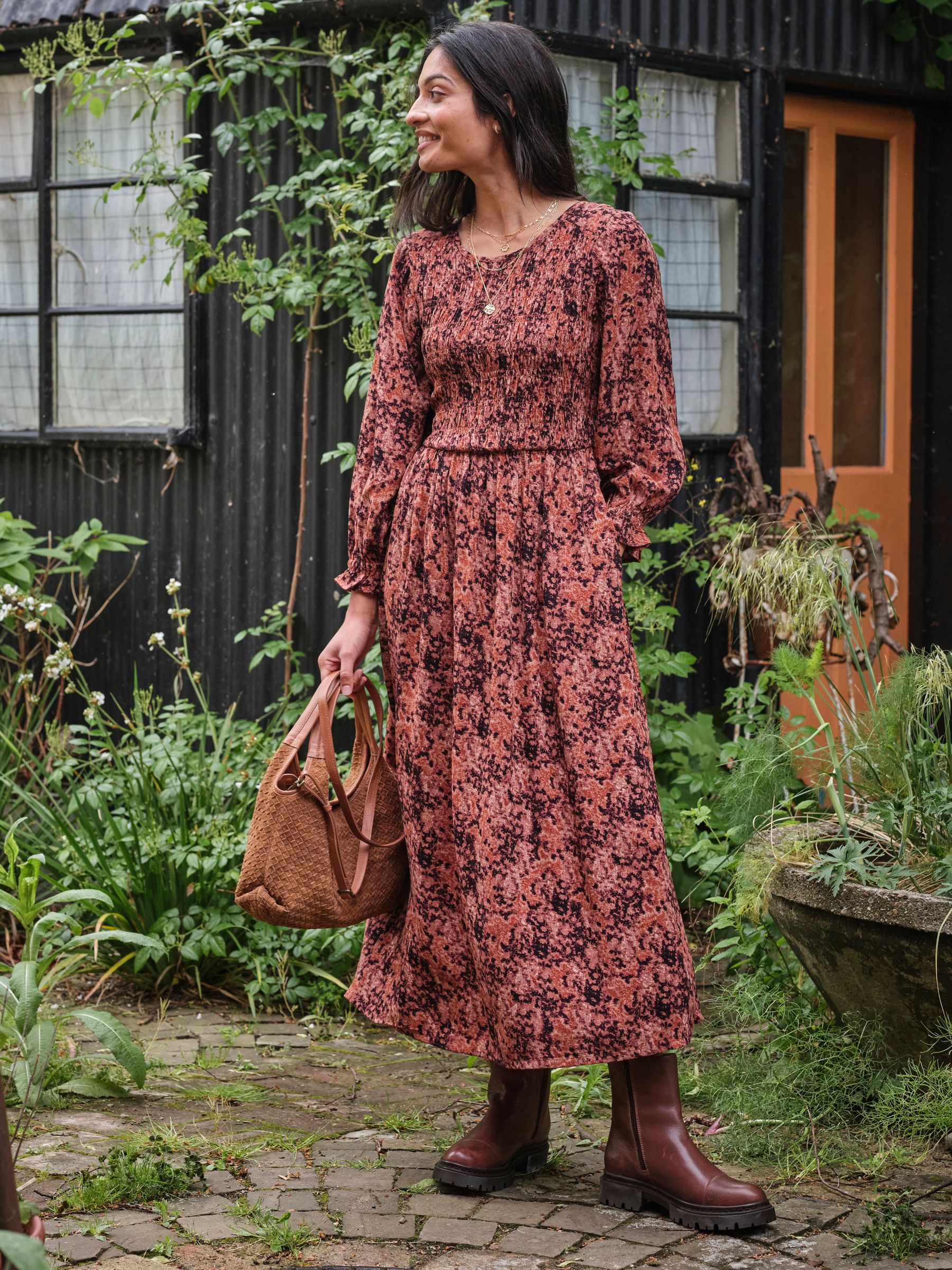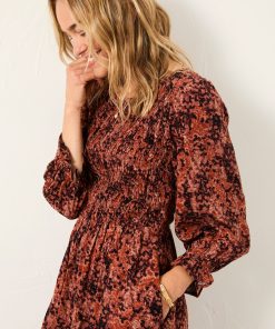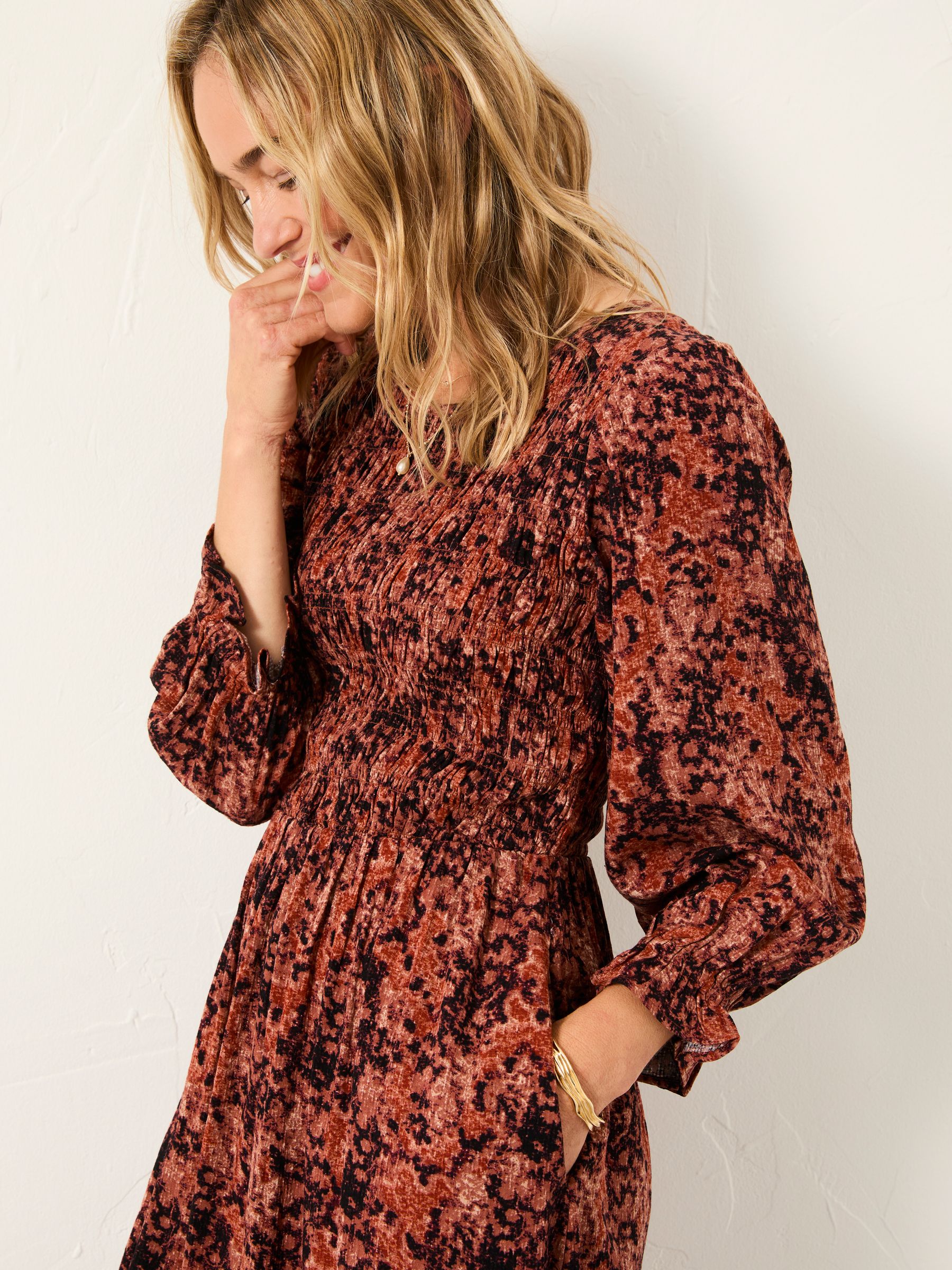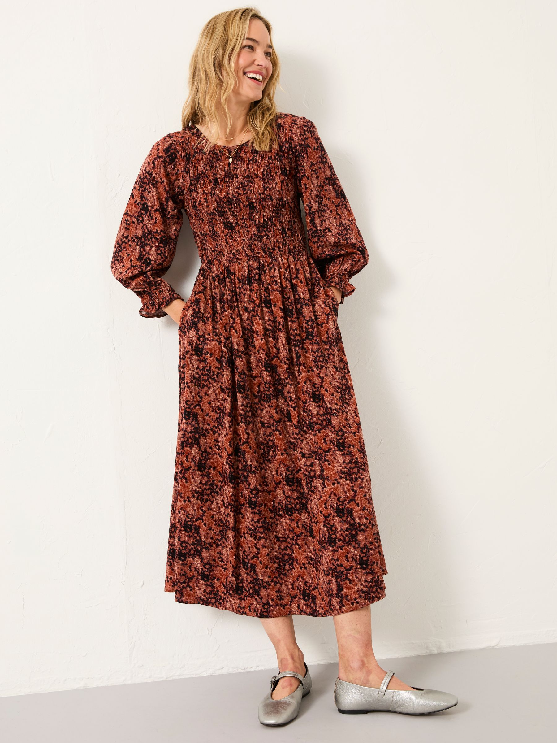 Fat Face Women’s Mabel Dusky Purple Vintage Texture Regular Midi Dress