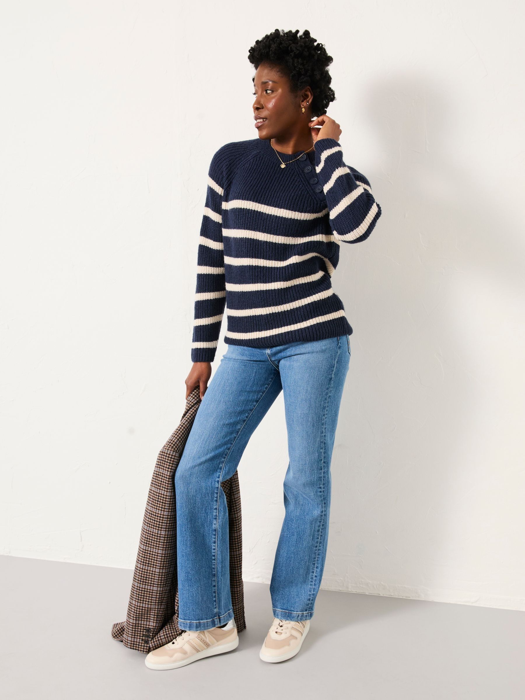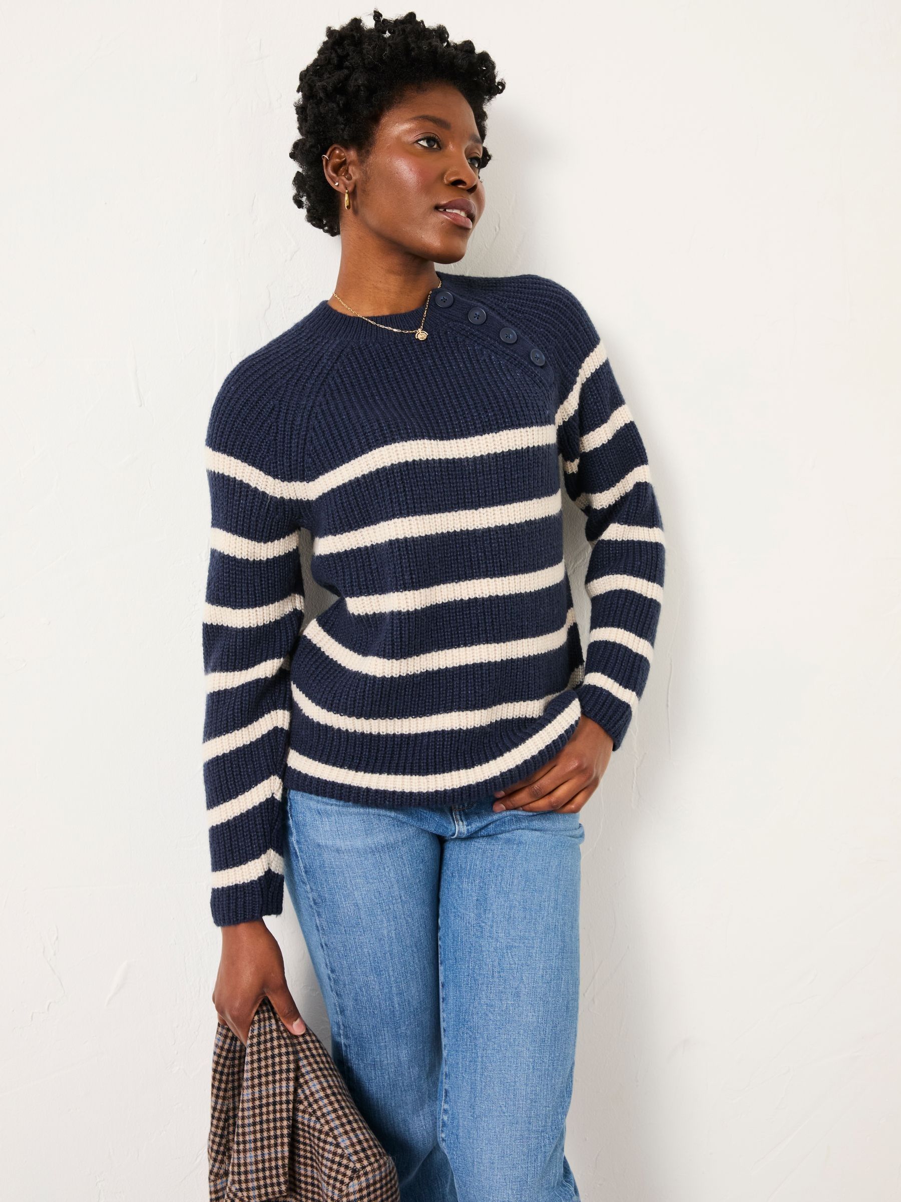 Stay stylish and cosy all day long in our Blanche knit cardigan, featuring a flattering v-neckline, cuffed sleeves and waistline, large front pockets and chunky buttons. Crafted from a soft fabric blend and an oversized fit, this cardigan is comfortable and ready to wear with all your favourite outfits. Whether you need a light layer over a dress or pairing with a staple pair of denim jeans for everyday wear, our jumpers will be your new favourite cosy piece.Model is 5’9”/175cm and wears UK size 8