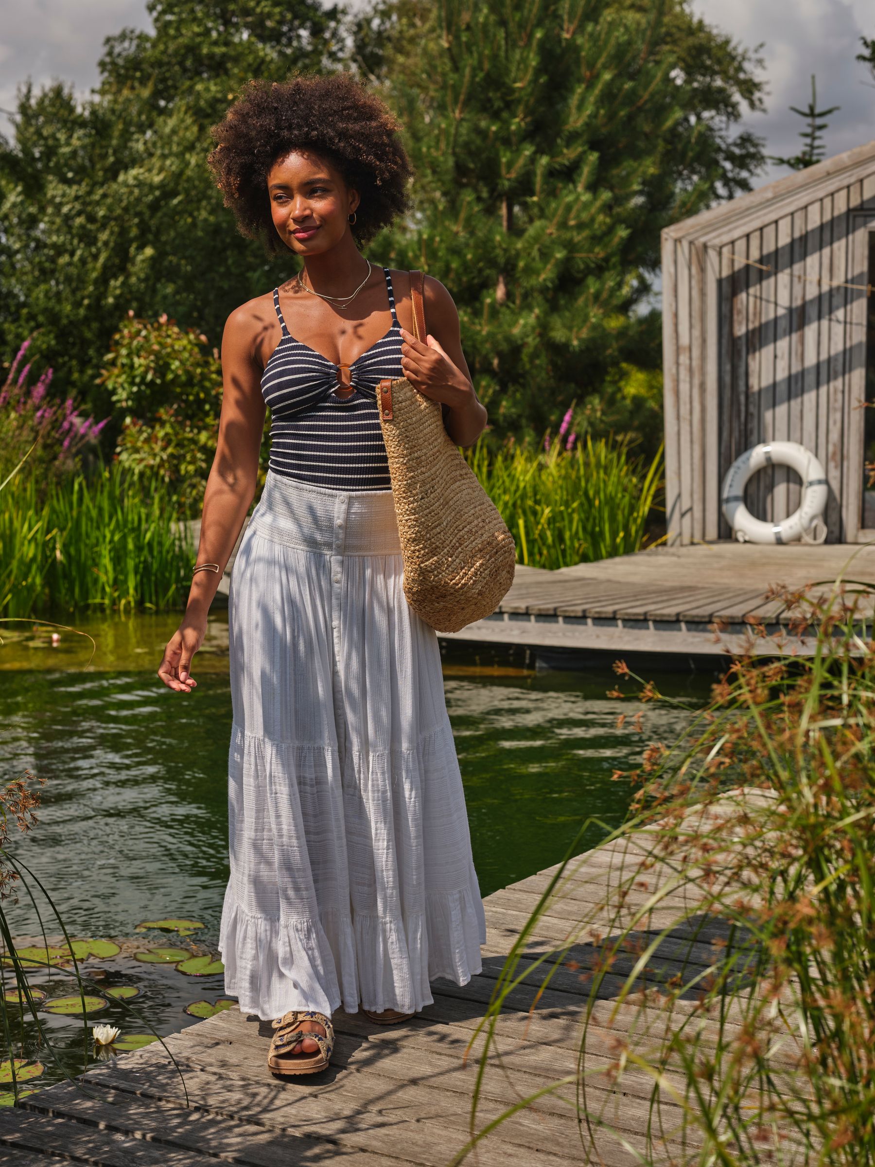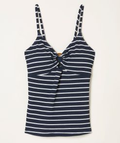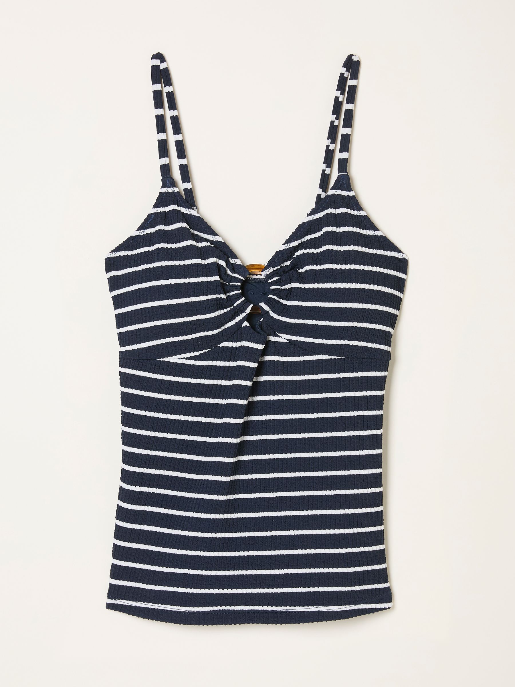 Classic with a feminine twist, this textured Breton stripe tankini top features a flattering fit and soft stretch fabric for all-day comfort. The ring detailing at the centre adds a stylish accent and a touch of elegance, while the timeless stripes keep it effortlessly chic. Pair with the matching bottoms for a coordinated beachside look.