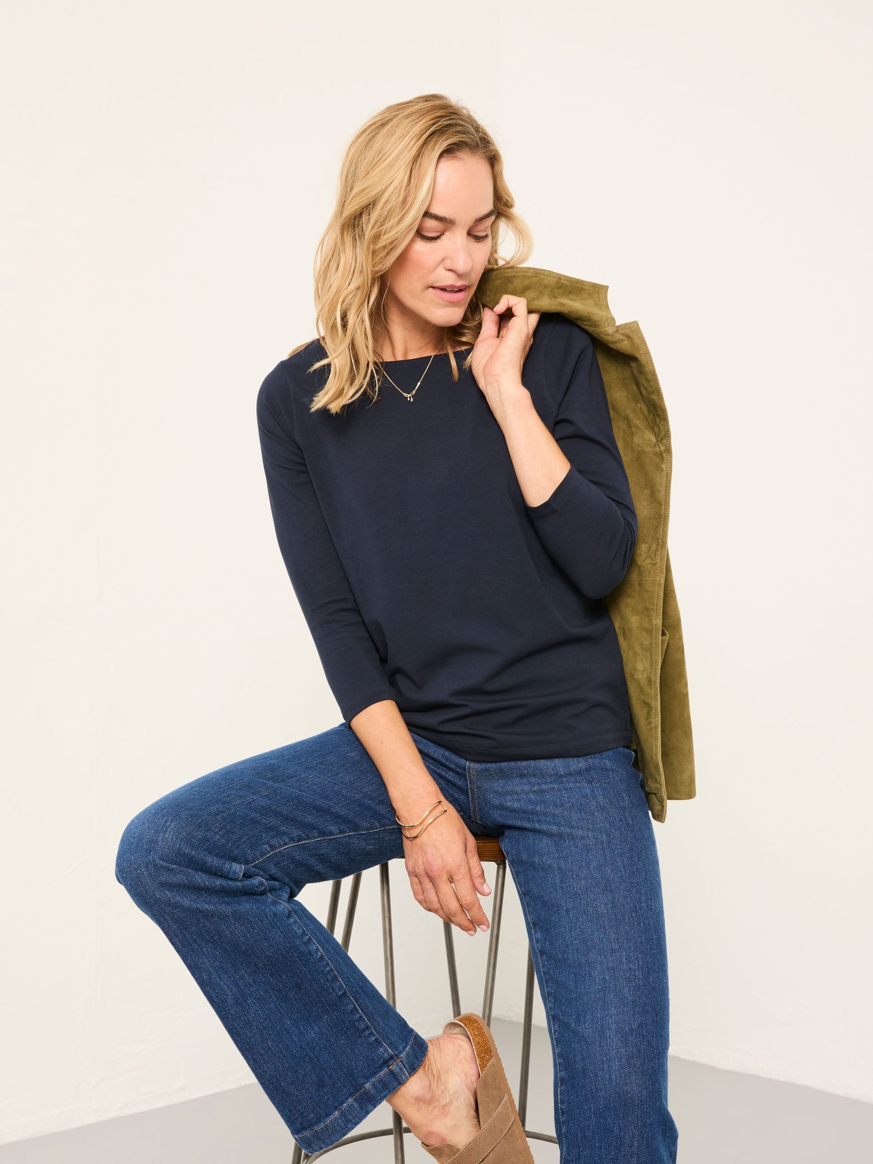 Fat Face Women’s Pip Navy Boat Neck Top | Navy