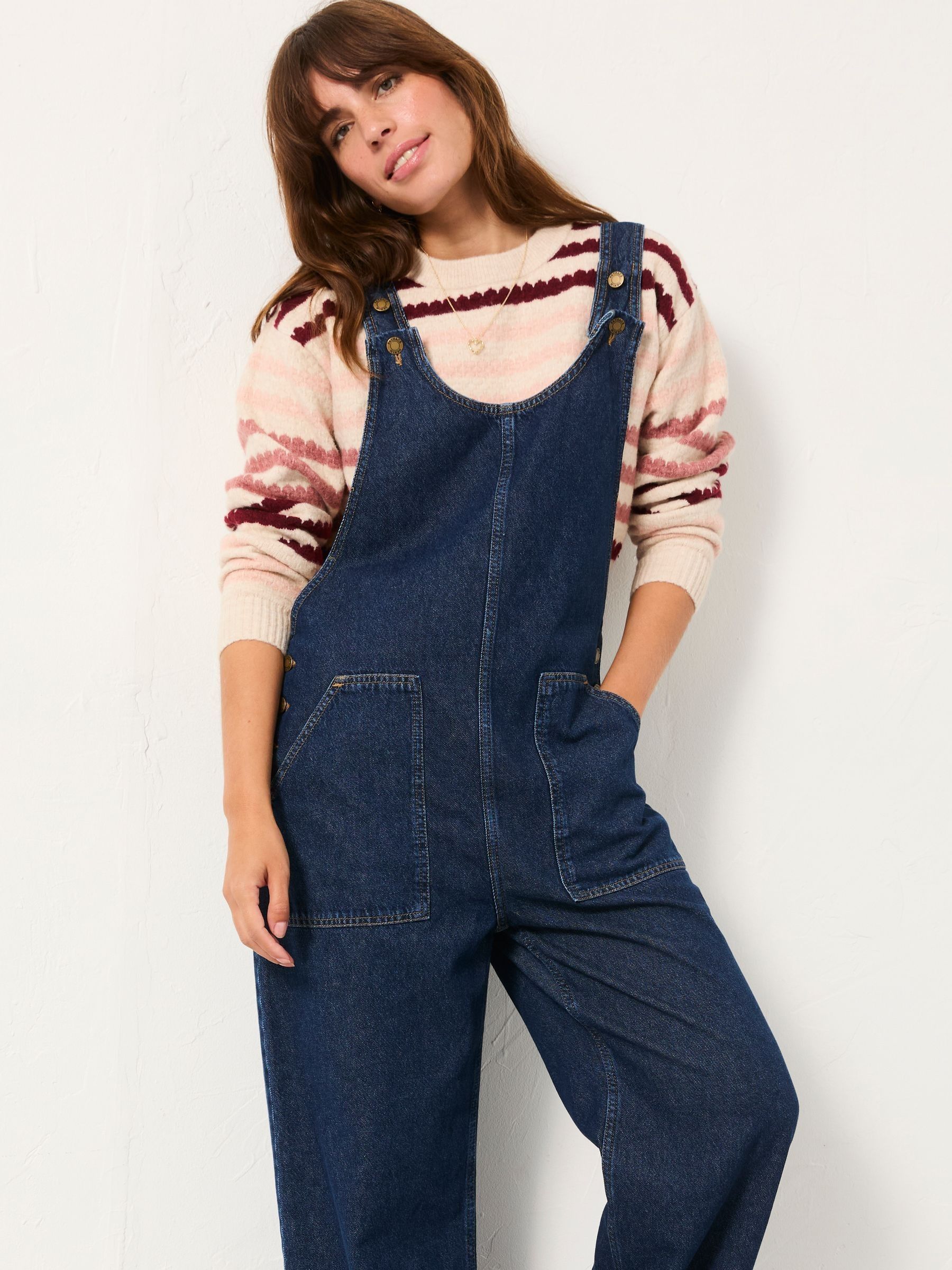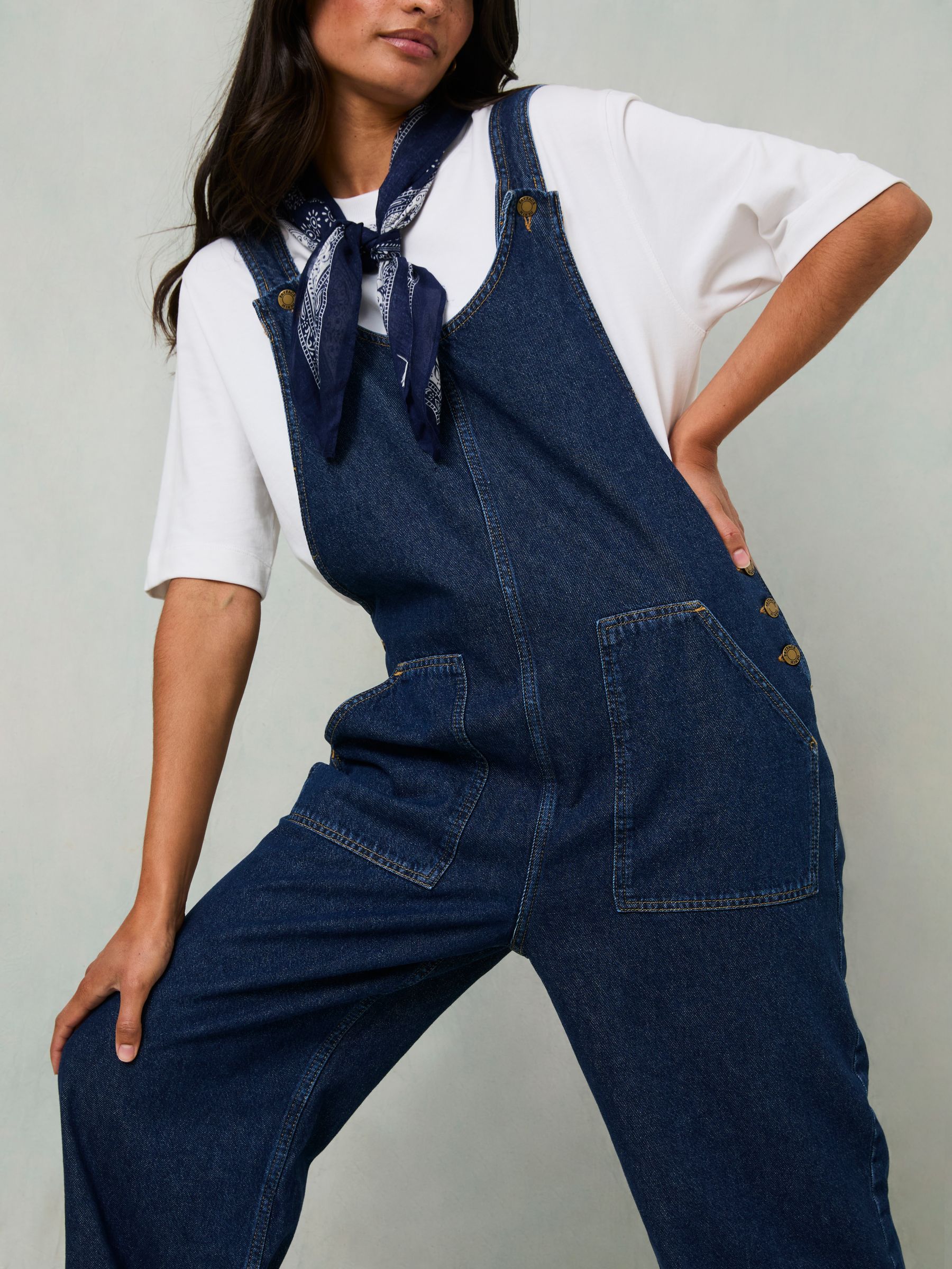 Our Raffles dungarees are the perfect wardrobe staple for an effortless and put together look, they are soft, and comfy with adjustable straps and handy front pockets. Dress with a chunky knit underneath for those colder walks, or a lightweight T-Shirt for summer coffee runs, these dungarees will be your wardrobe best friend.Model is 5’8”/173cm and wears UK size 8Short inside leg length 27" / 68cm.Regular inside leg length 27" / 68cm.Long inside leg length 28.5" / 73cm.