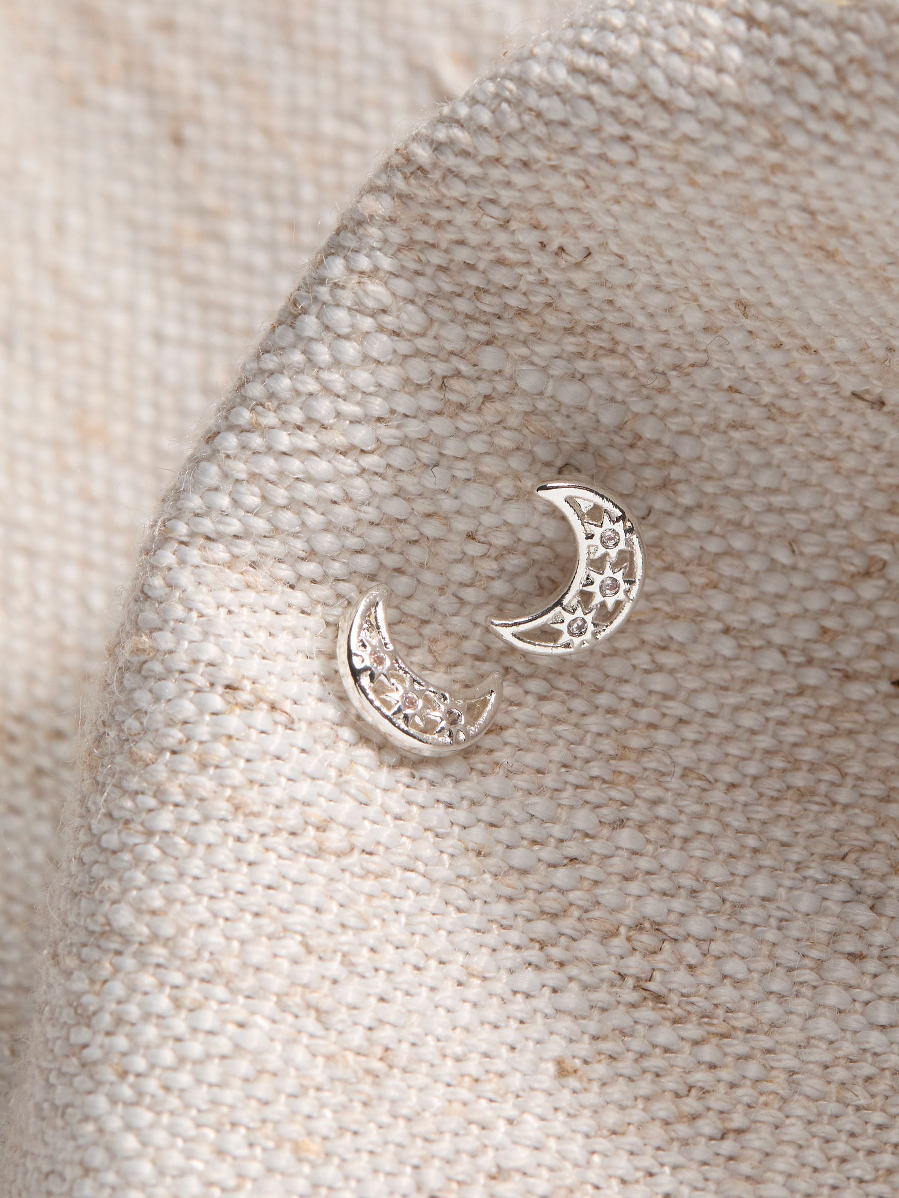 Make a statement in our silver toned moon stud earrings – the perfect option to elevate your look from day to night.