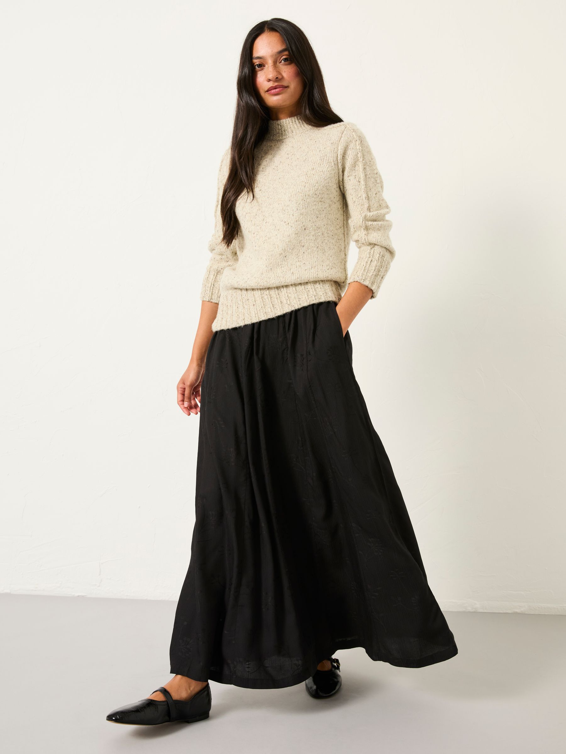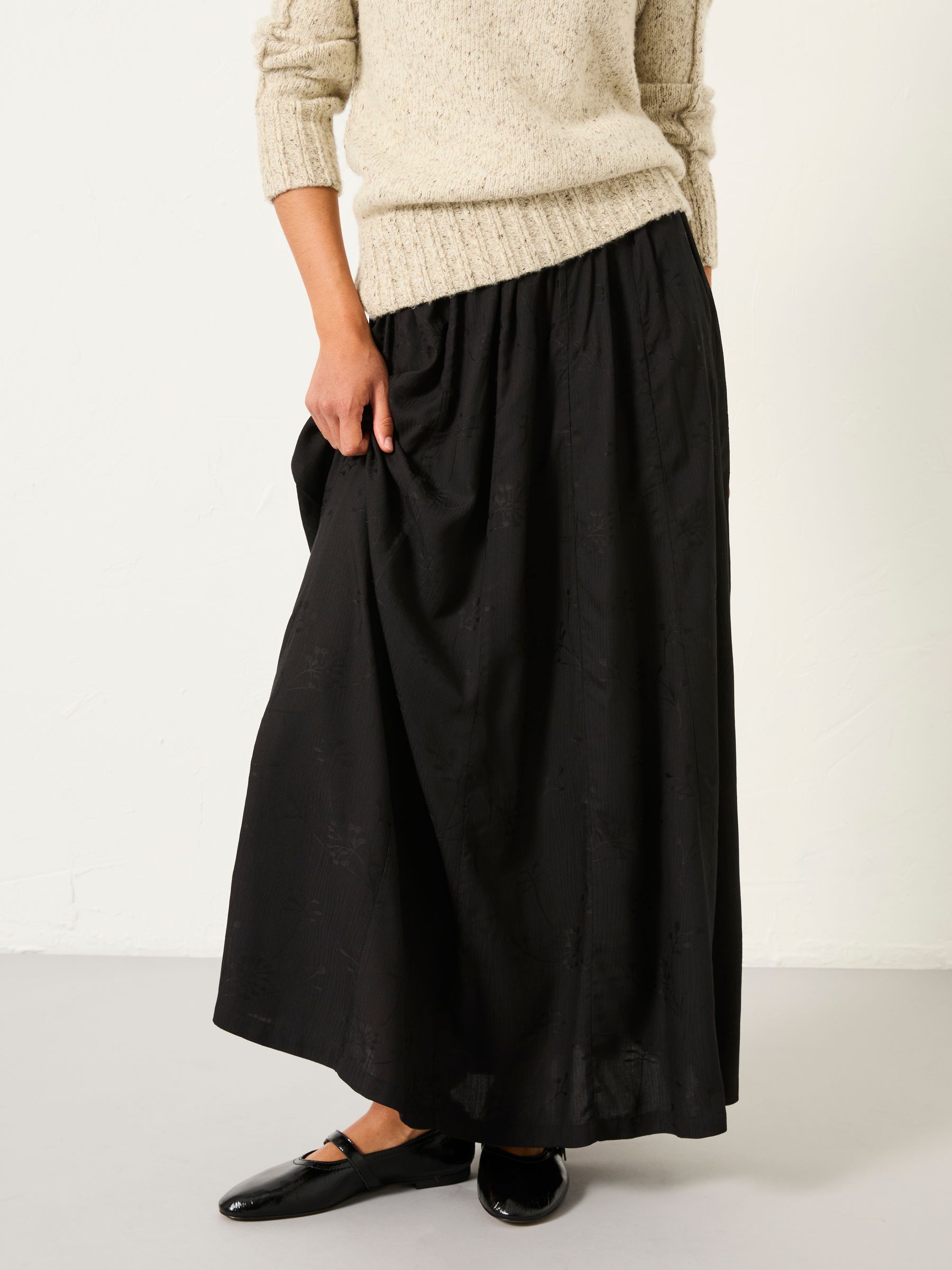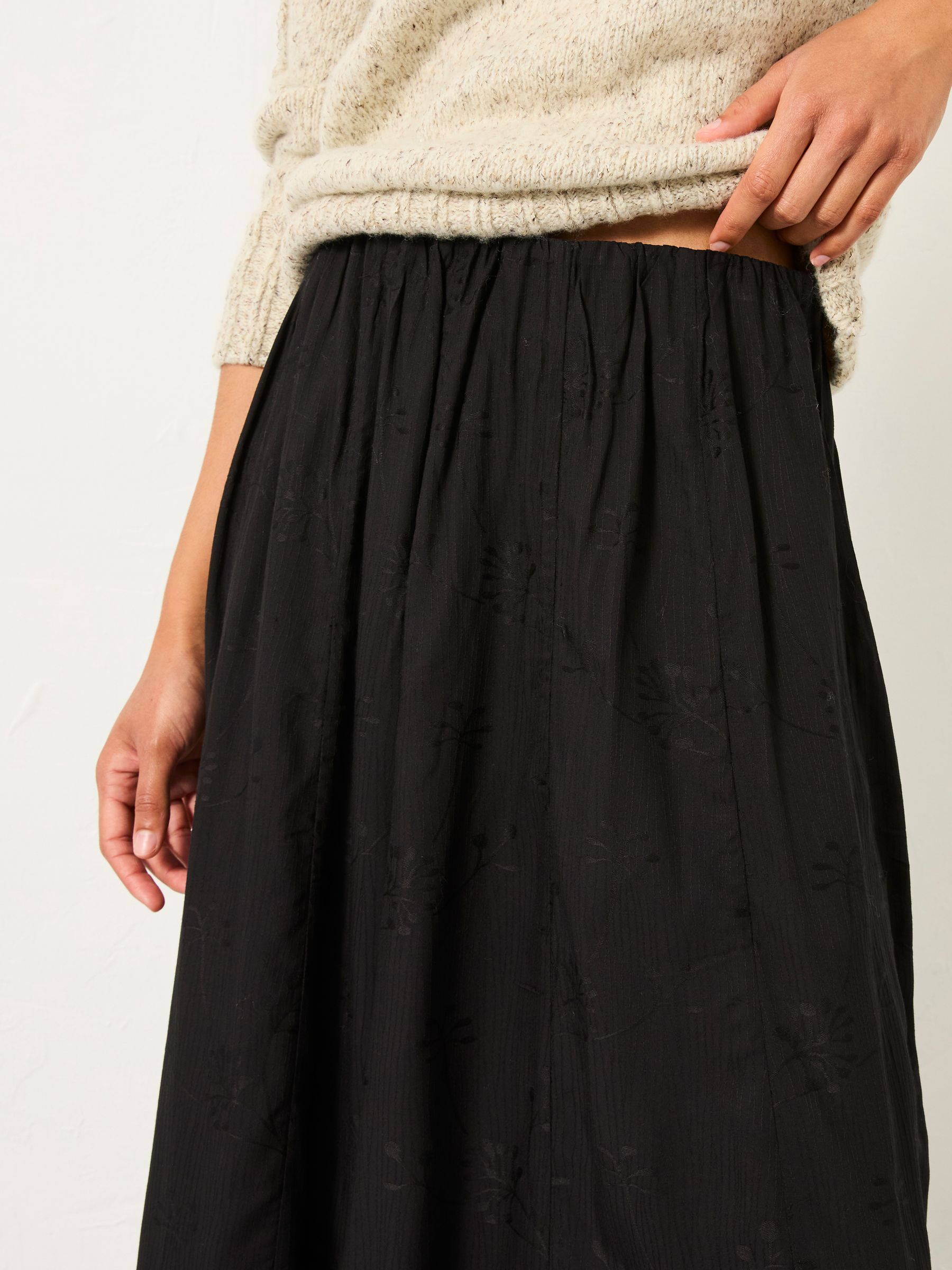 Stand out in style with our Tilly midi skirt. Made from a soft 100% viscose, this skirt is comfortable and breathable, ideal for dressing up or down. With an embroidered design, a flattering shape and length and a soft feel, it is the perfect transitional piece for your wardrobe. Wear on office days with tights and a blouse or to evening drinks with heels, this skirt is easy to style and look good in.Model is 5’9”/175cm and wears UK size 8Regular waistband to hem 35.5" / 90cm.