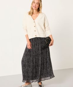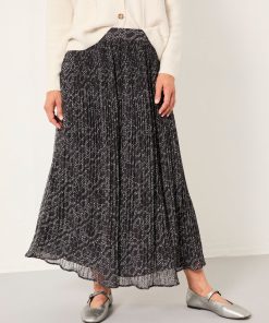 Fat Face Women’s Paignton Graphite Grey Texture Floral Midi Skirt | Graphite Grey Texture Floral